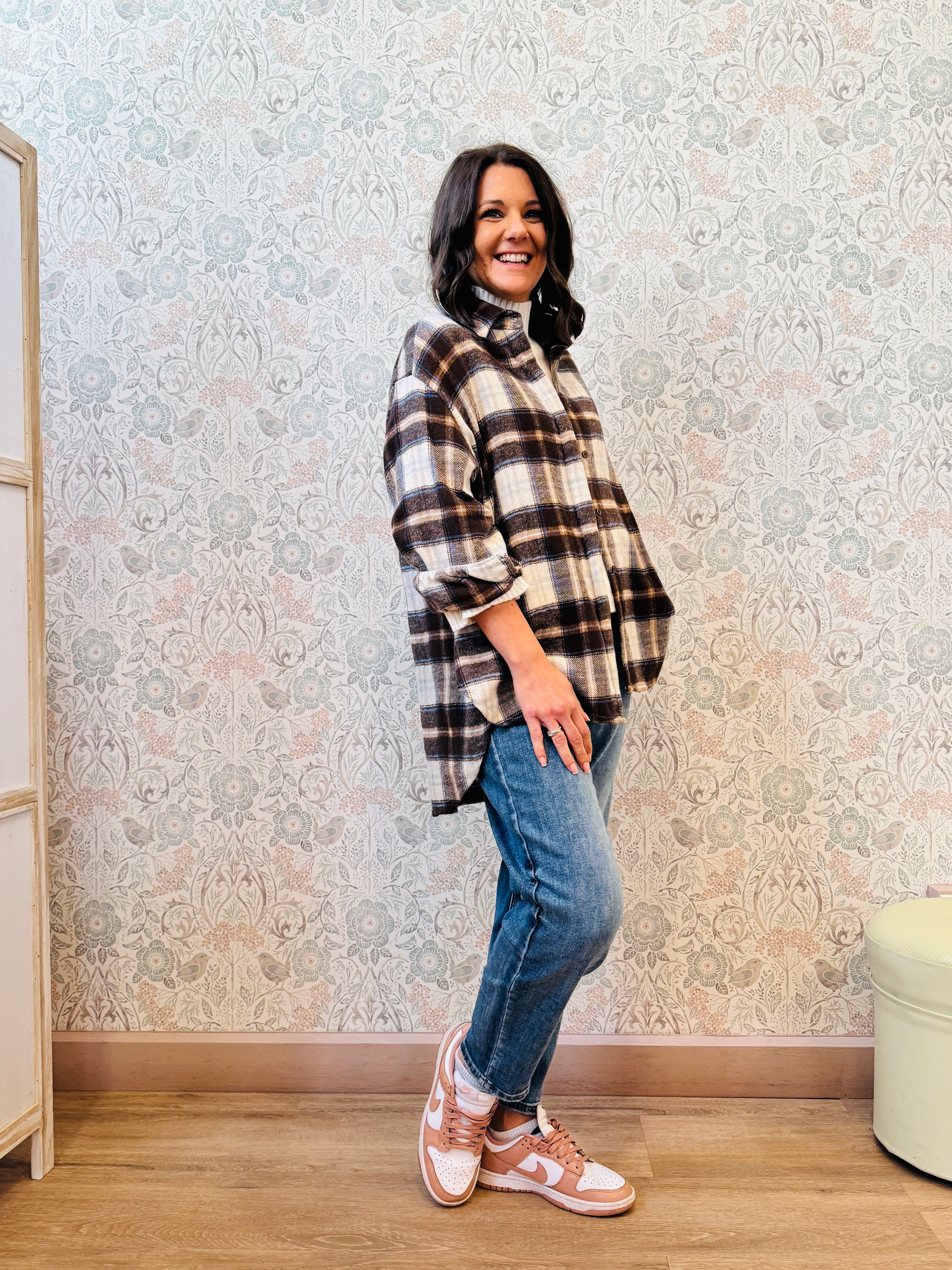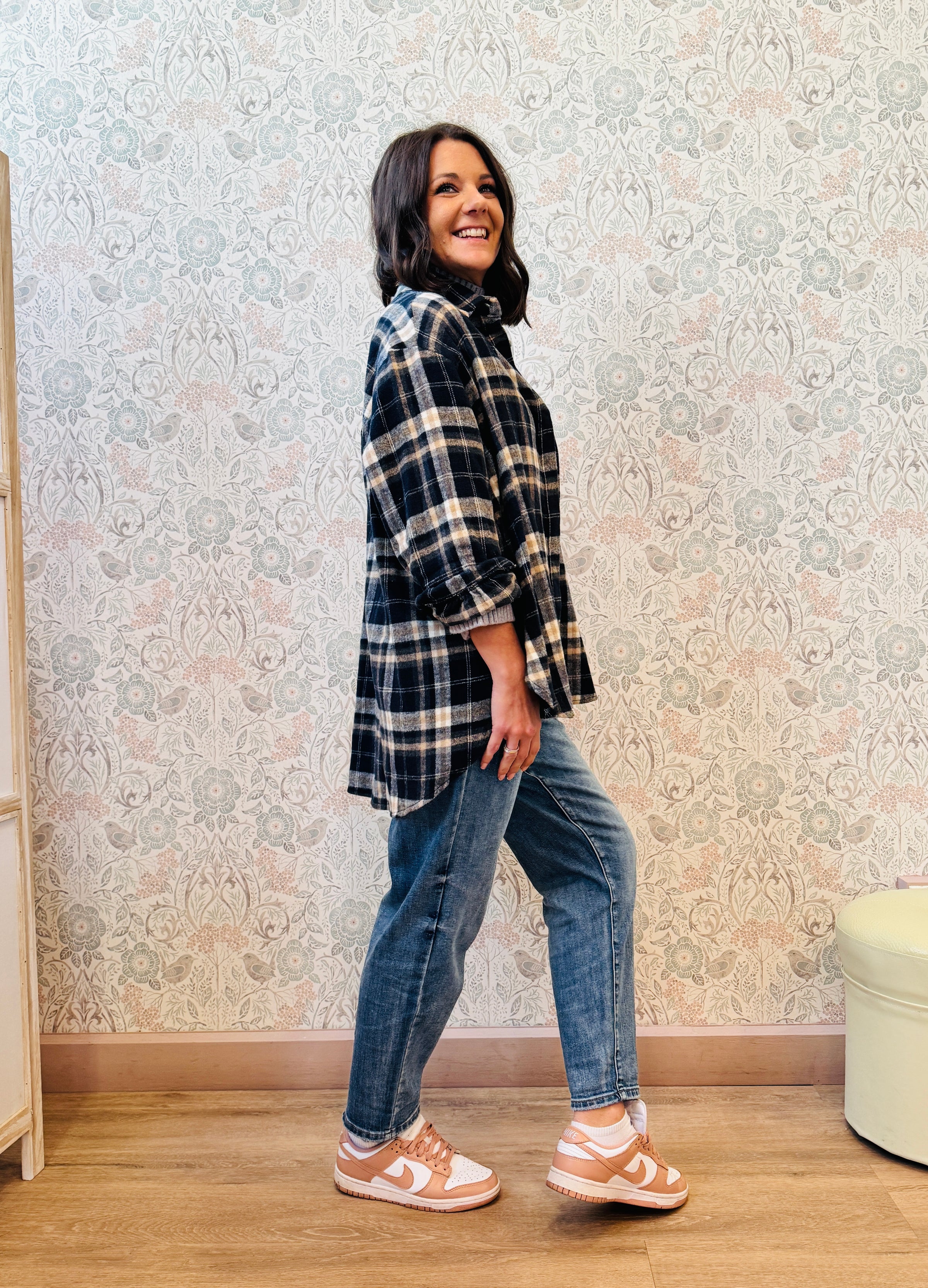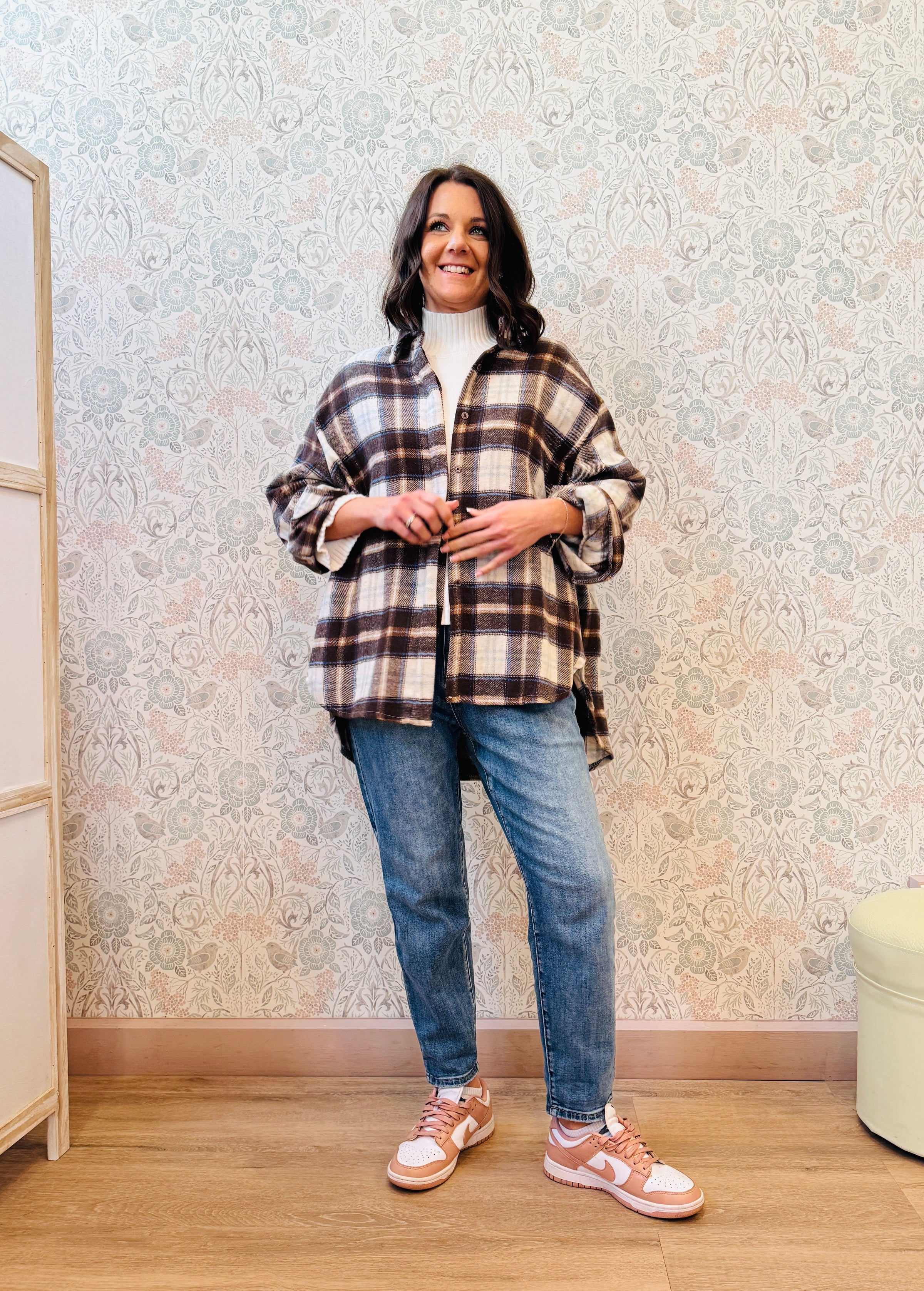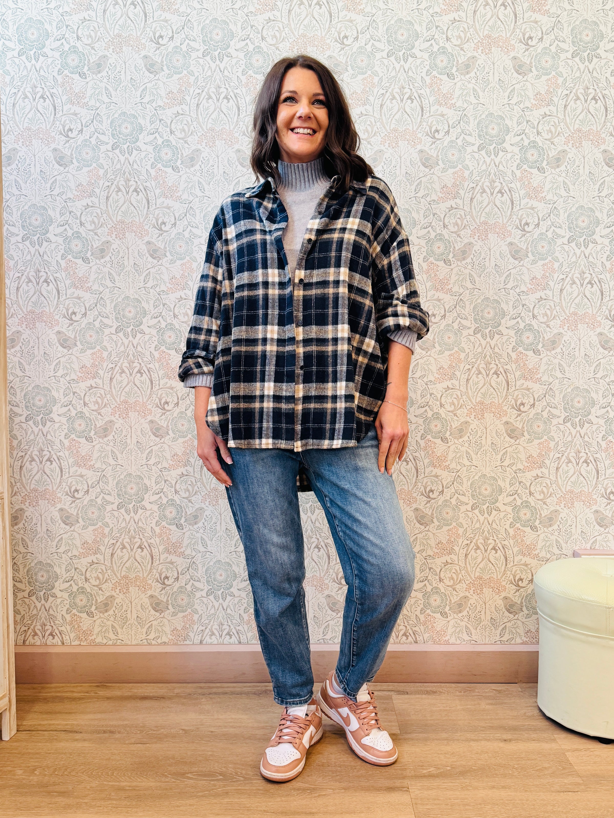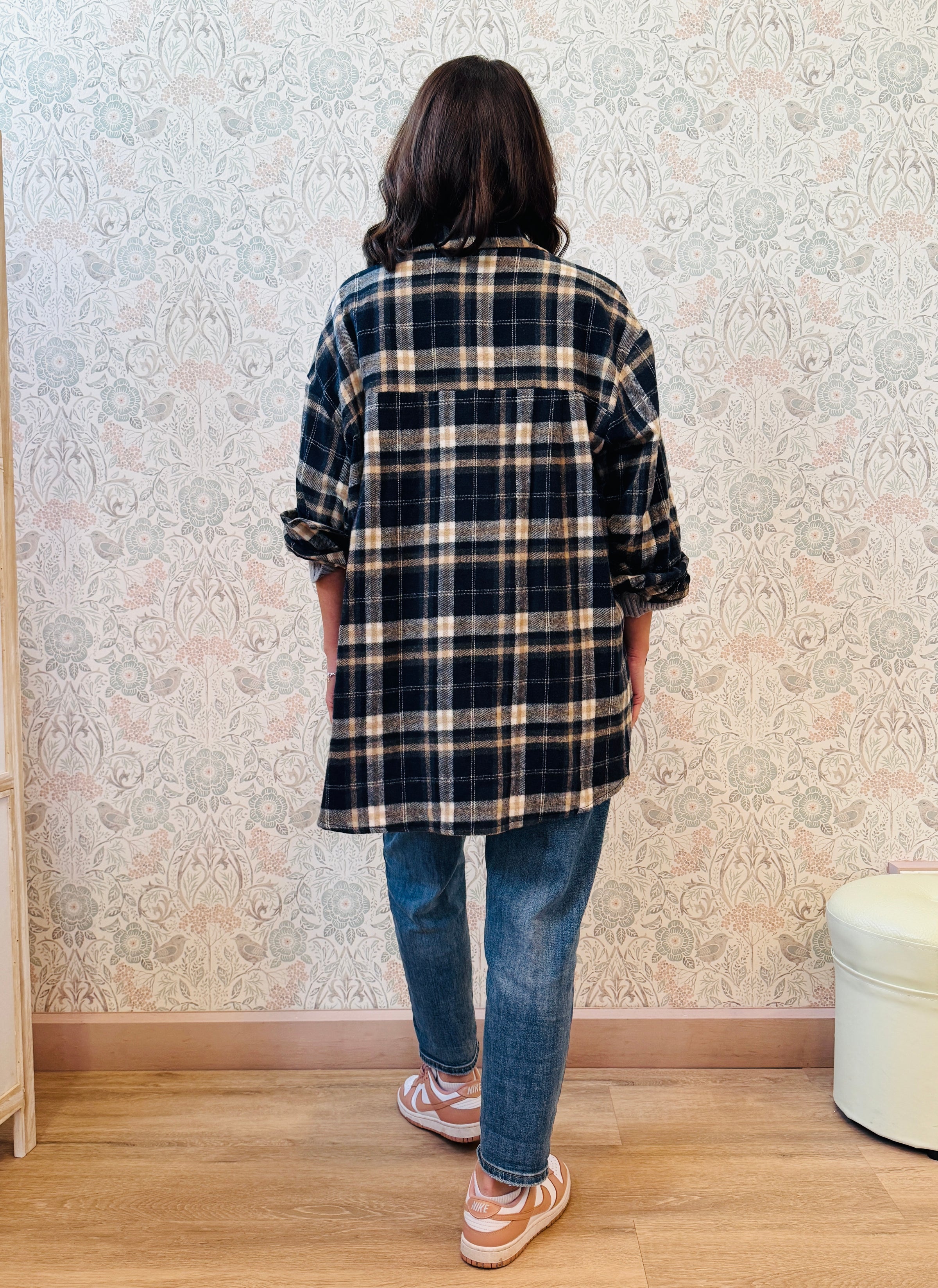 Camicia in tessuto doppio con fantasia a quadretti. Vestibilita' rilassata e over.