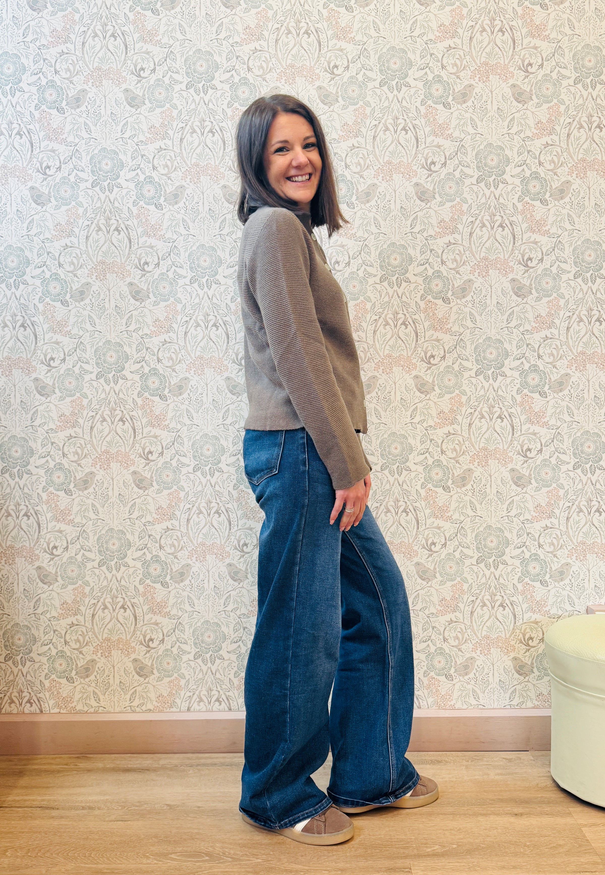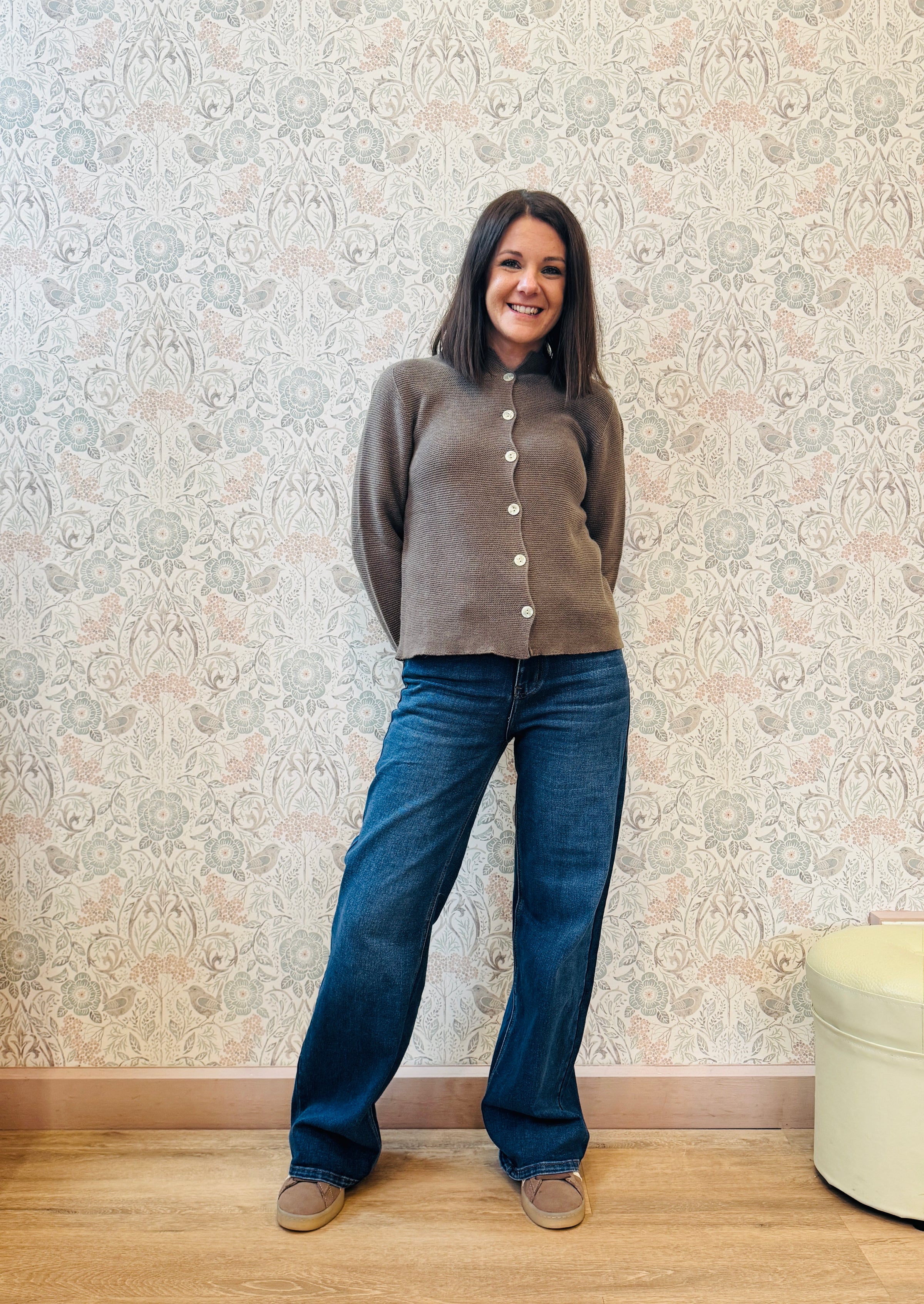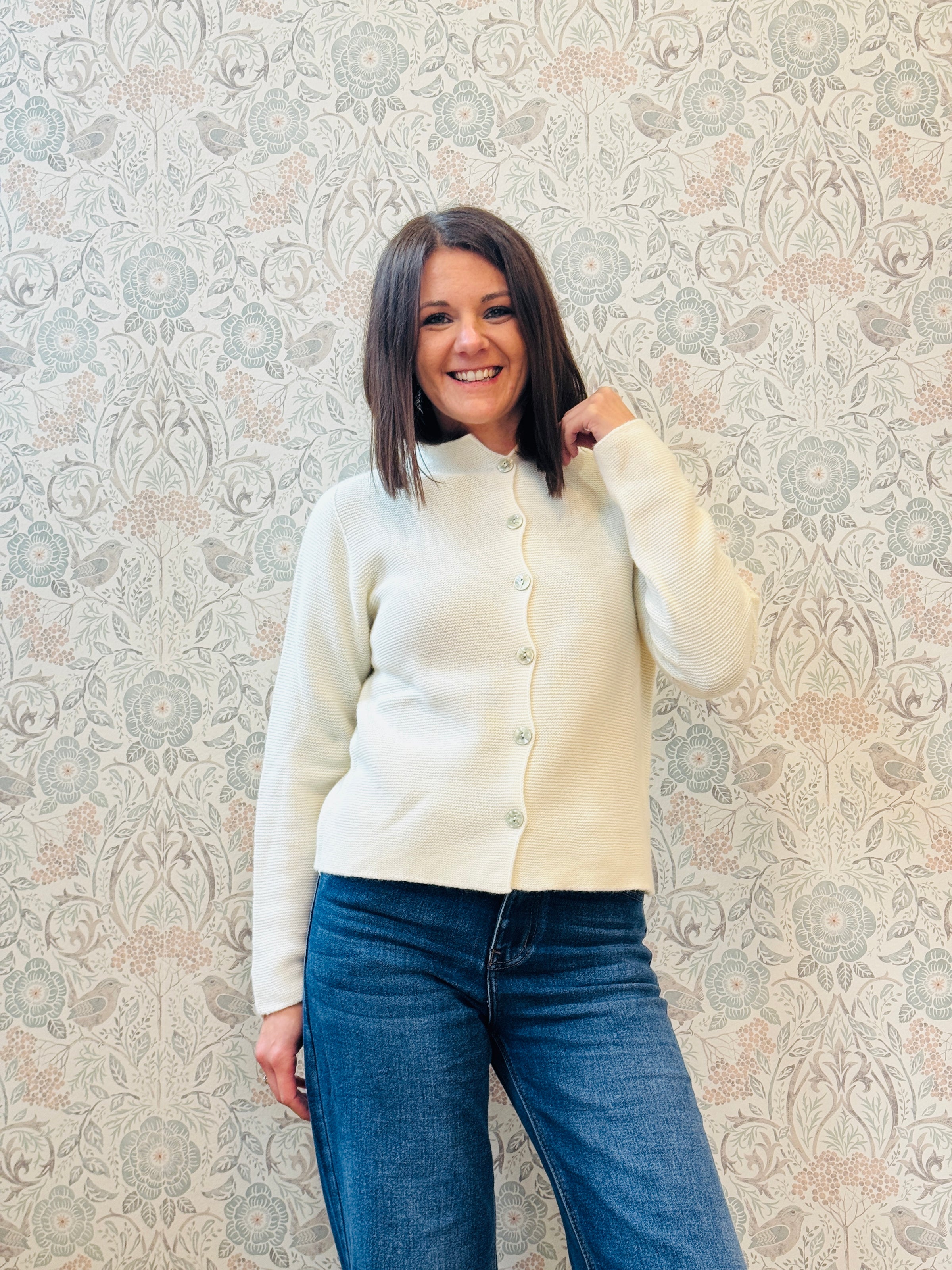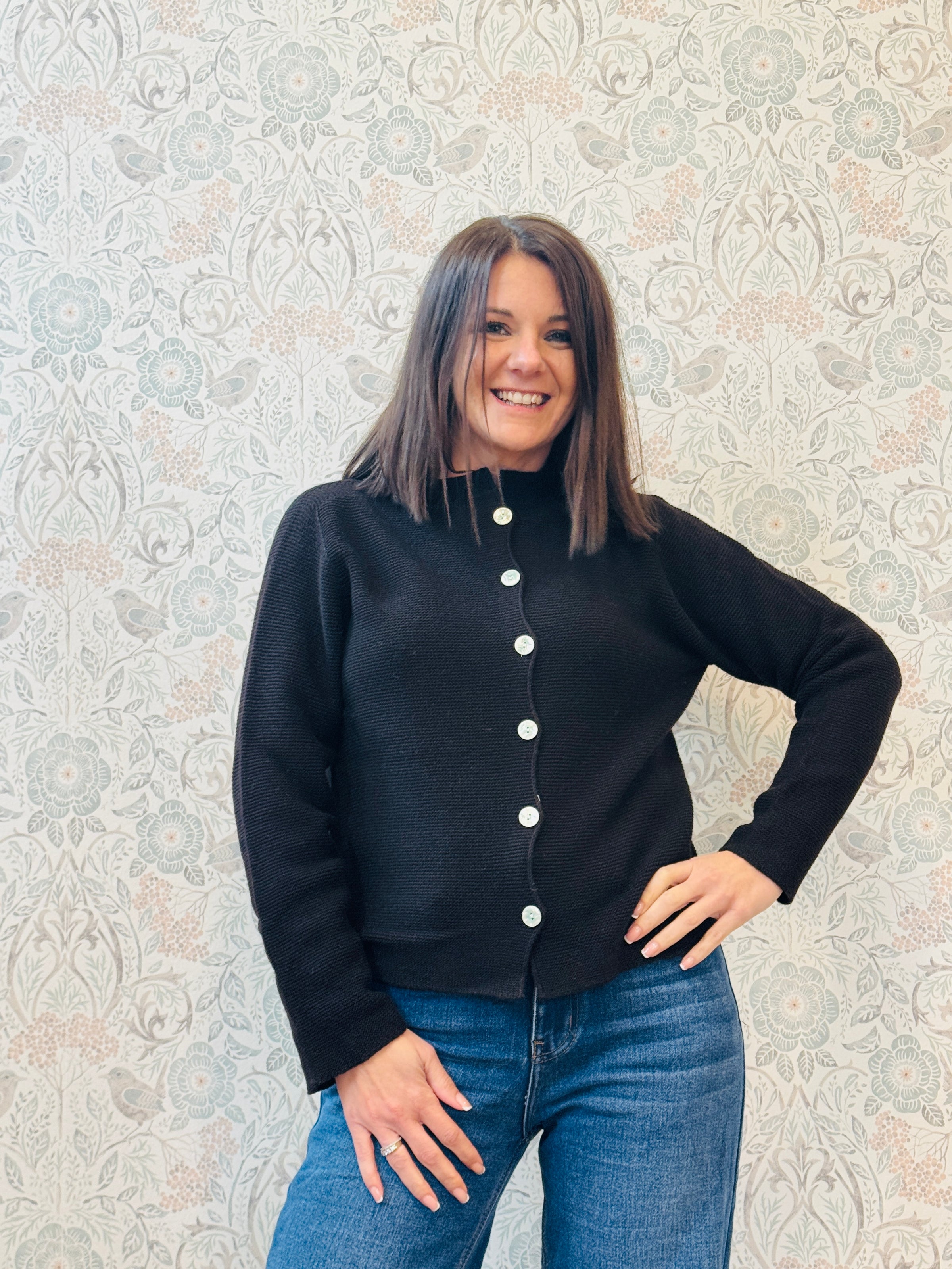 Cardigan in trama grossa ad onde con collo alla coreana e bottoni ad asola n madreperla.