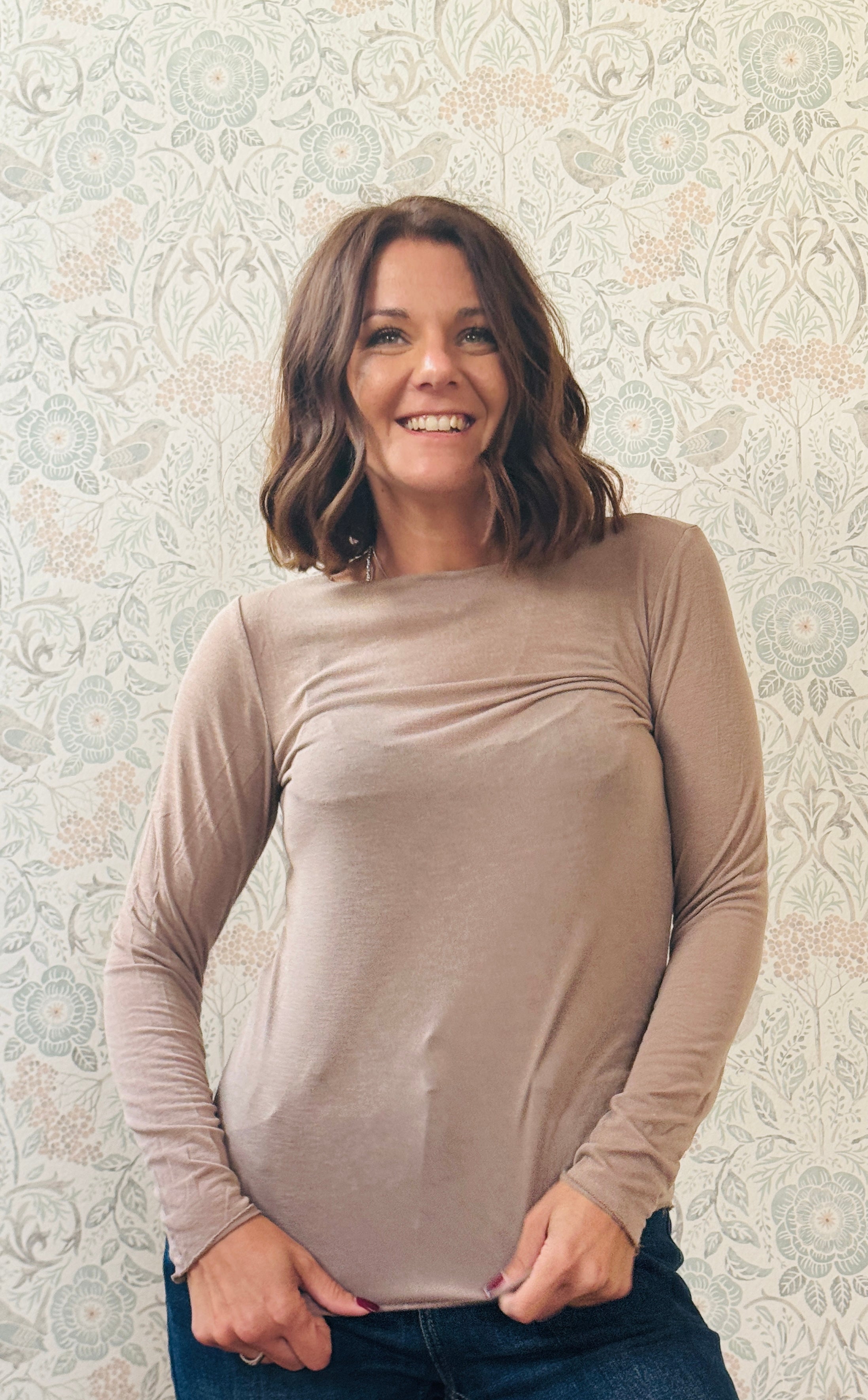 L'iconica t-shirt a manica lunga bodycon con scollo a barchetta.