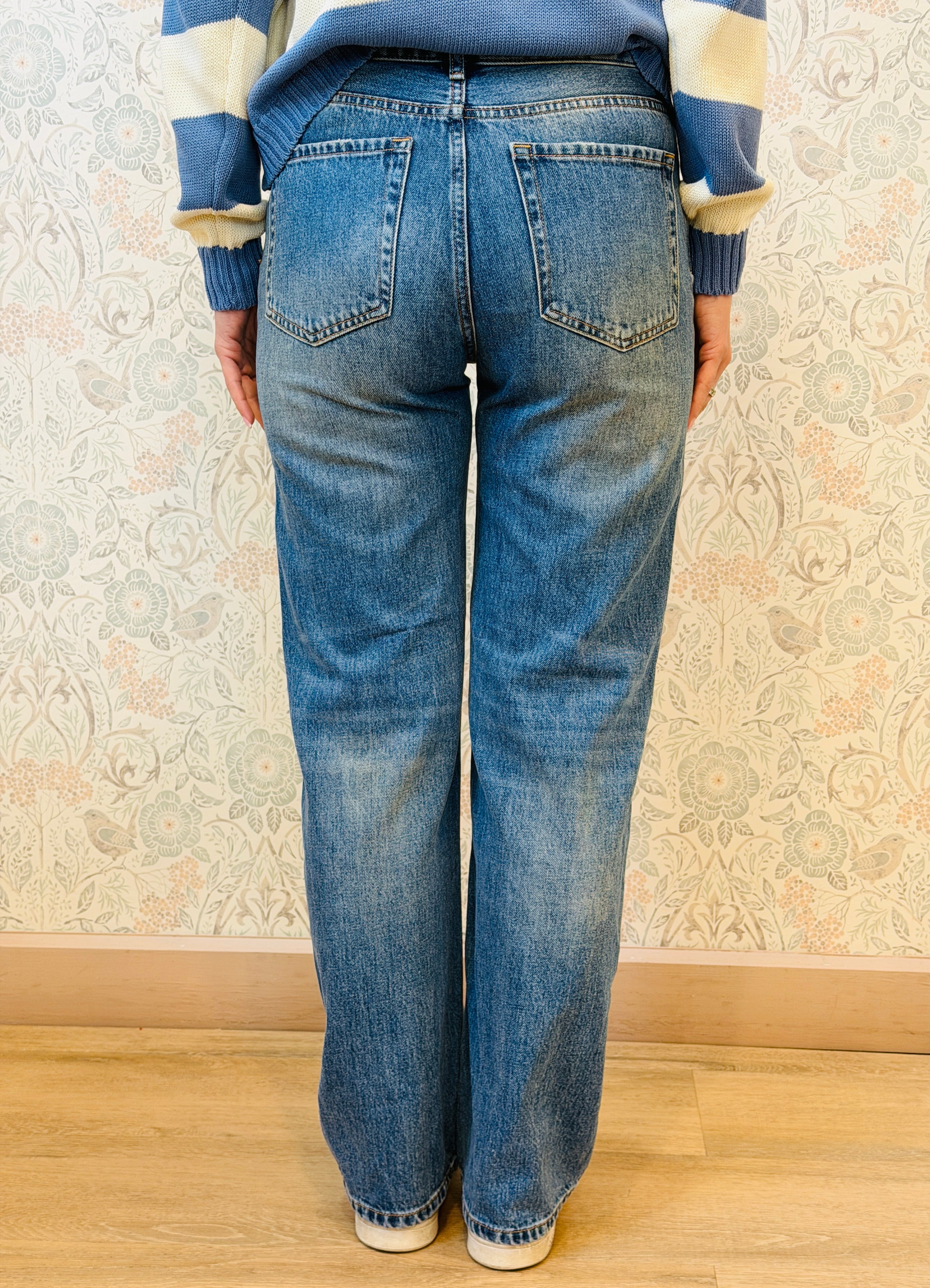 Jeans modello straight cinque tasche, con vita regolare e gamba dritta.