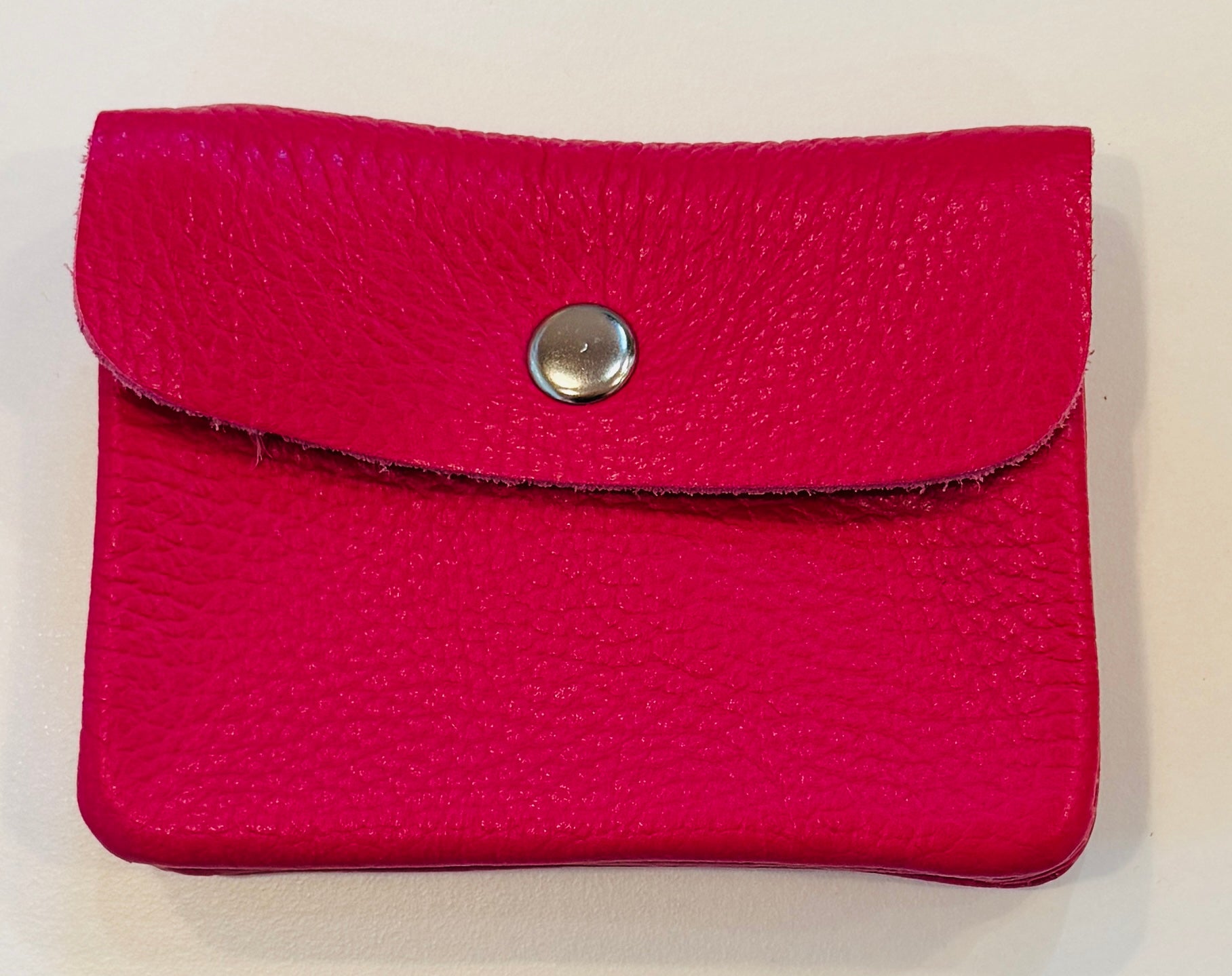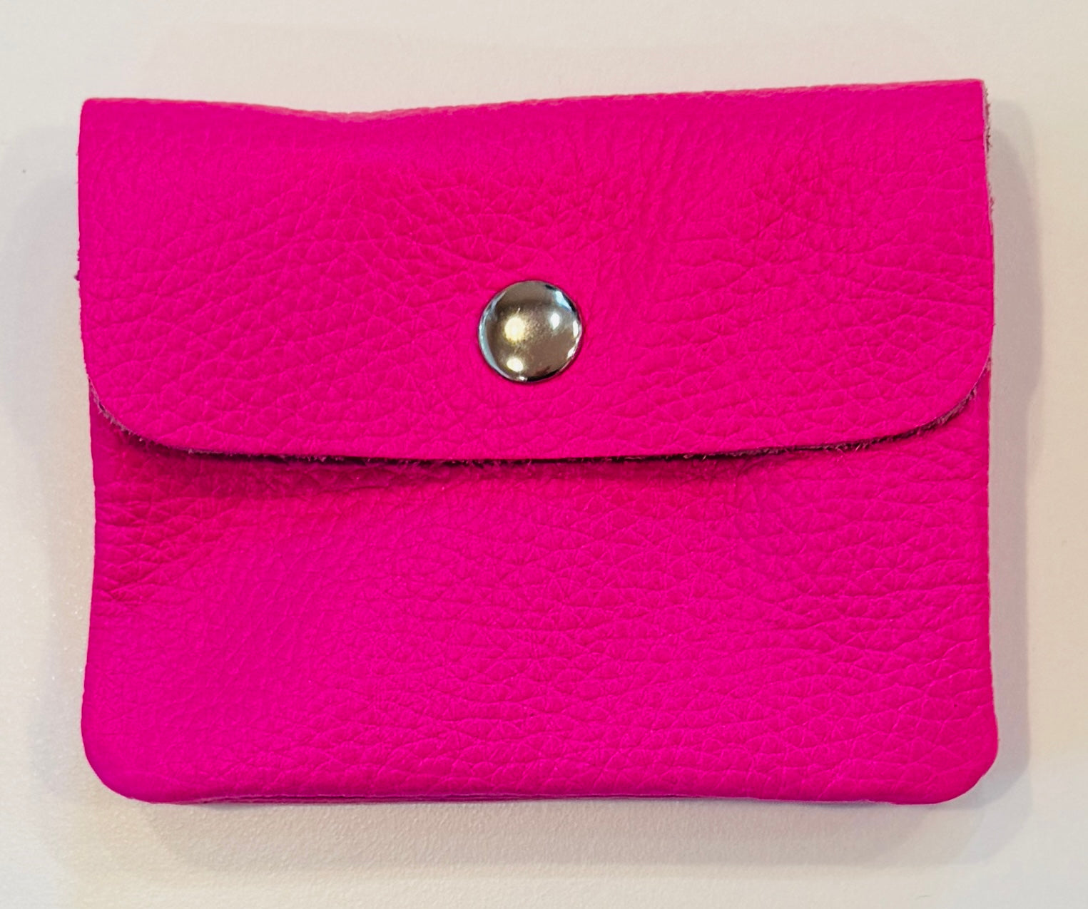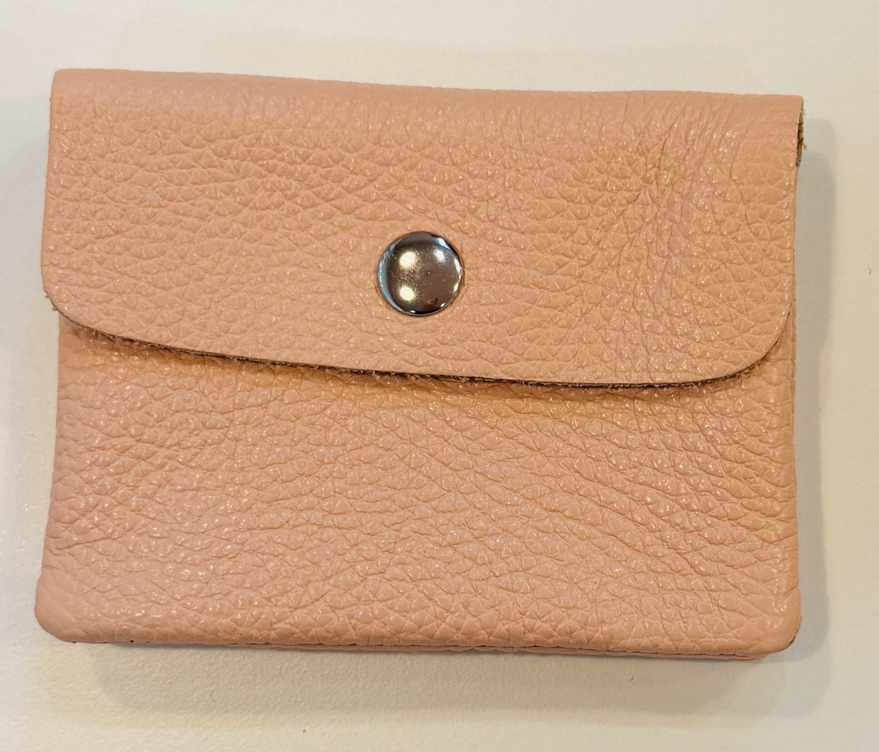 La versione mini del nostro iconico portafoglio busta. Chiusura con bottone a clip e tre tasche interne, due aperte e una con zip.