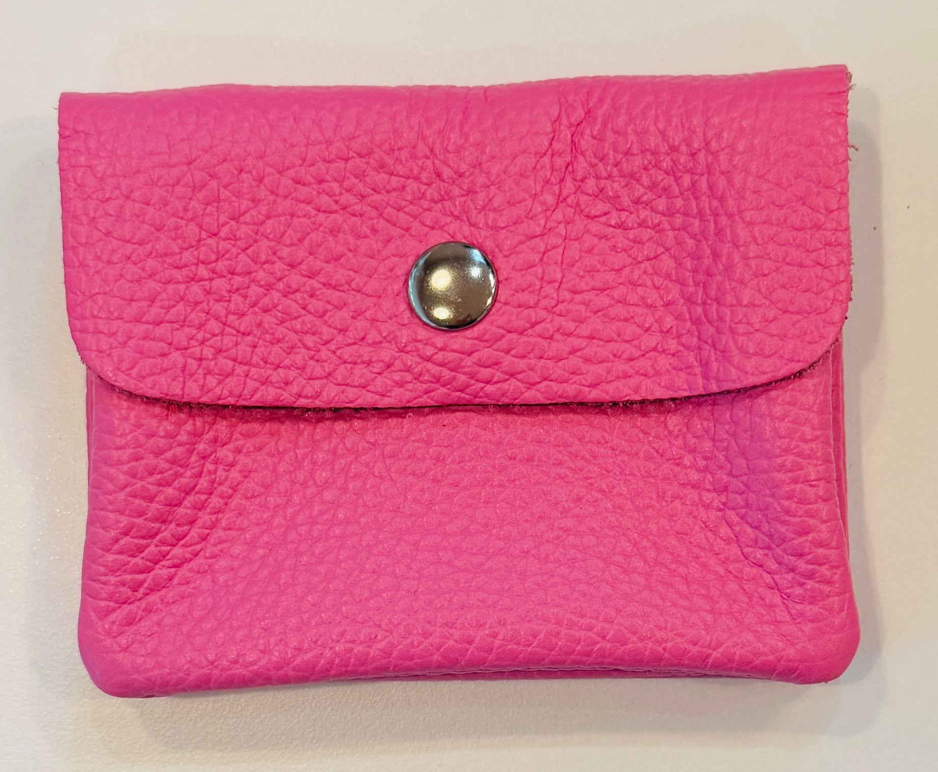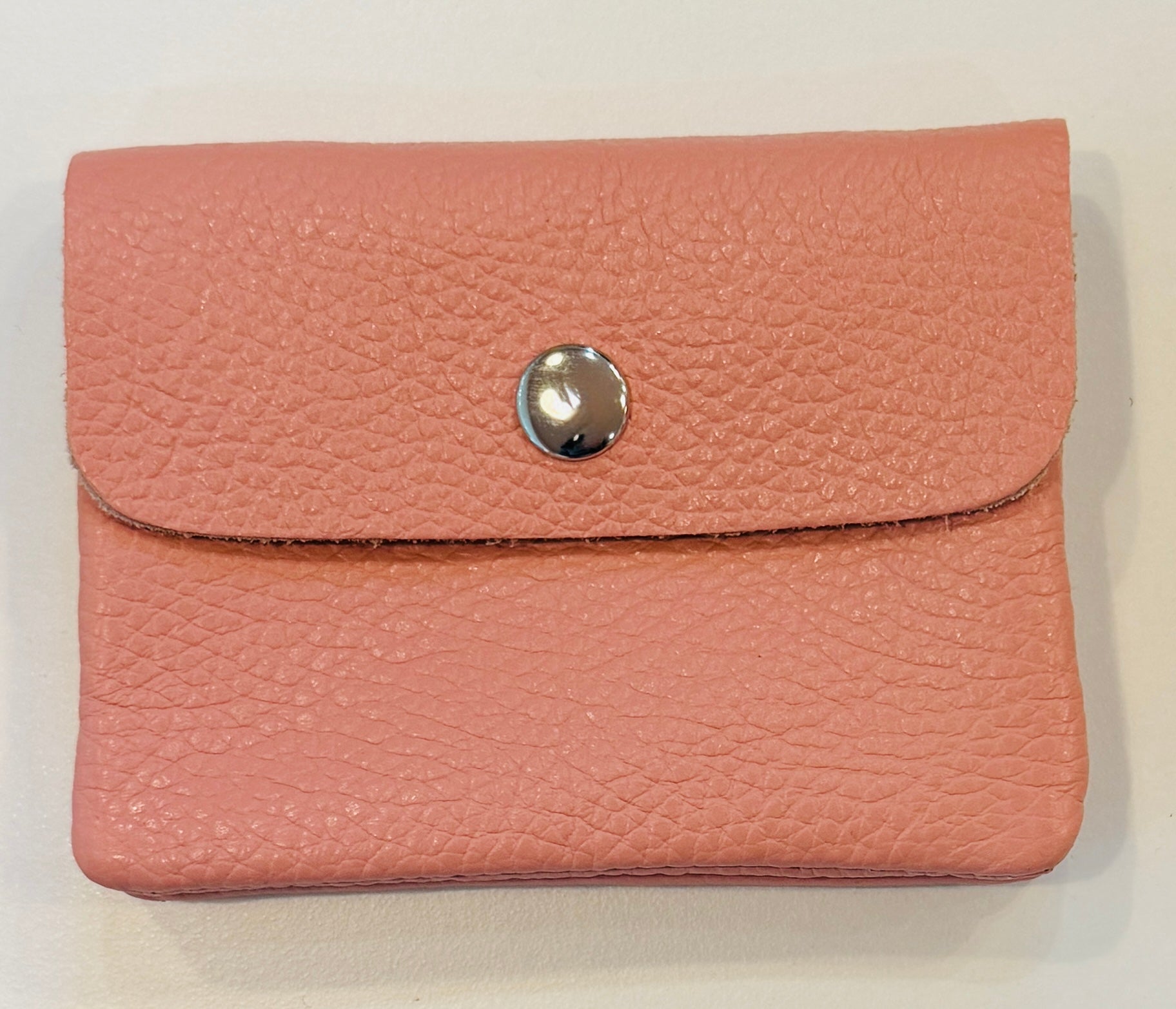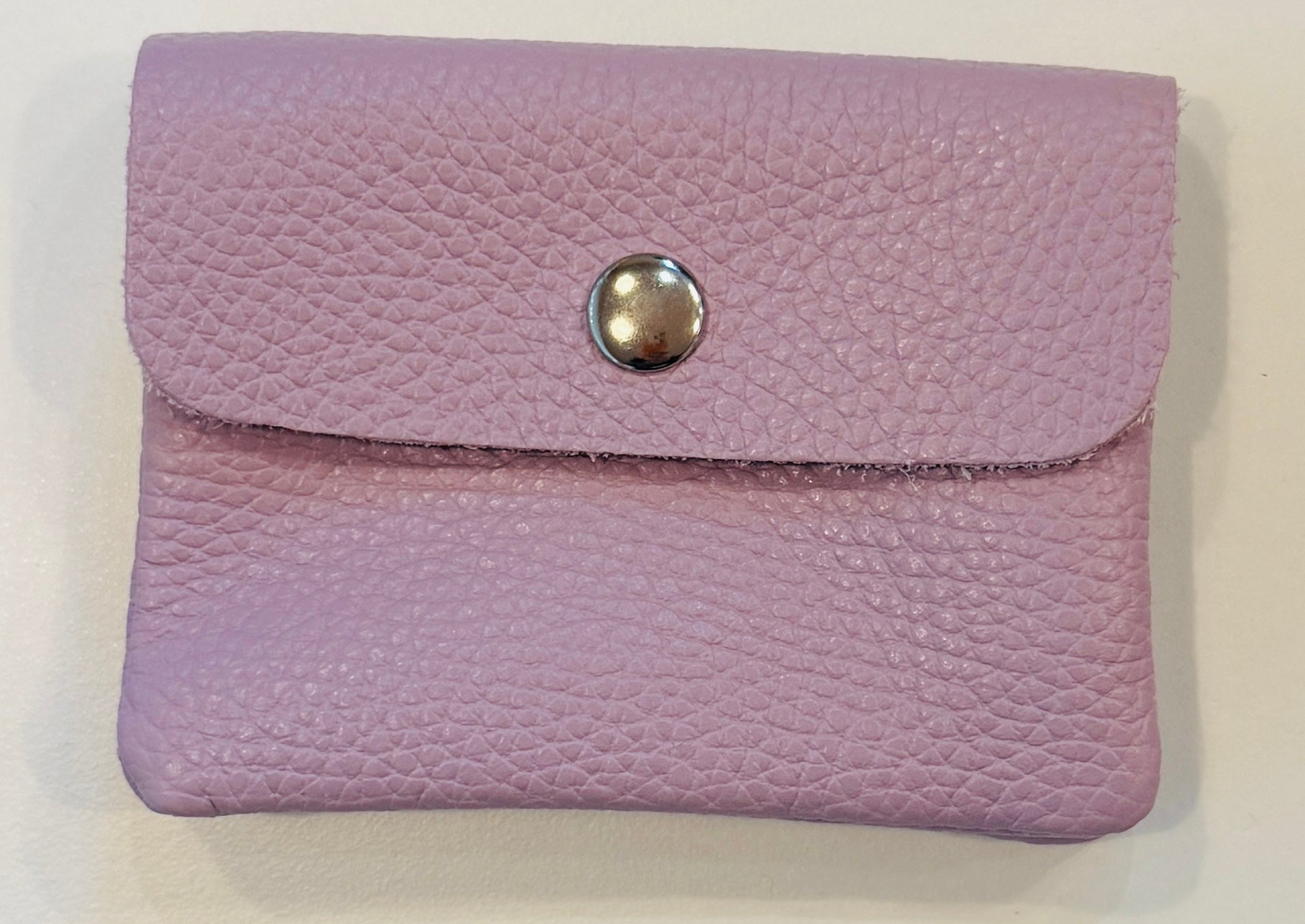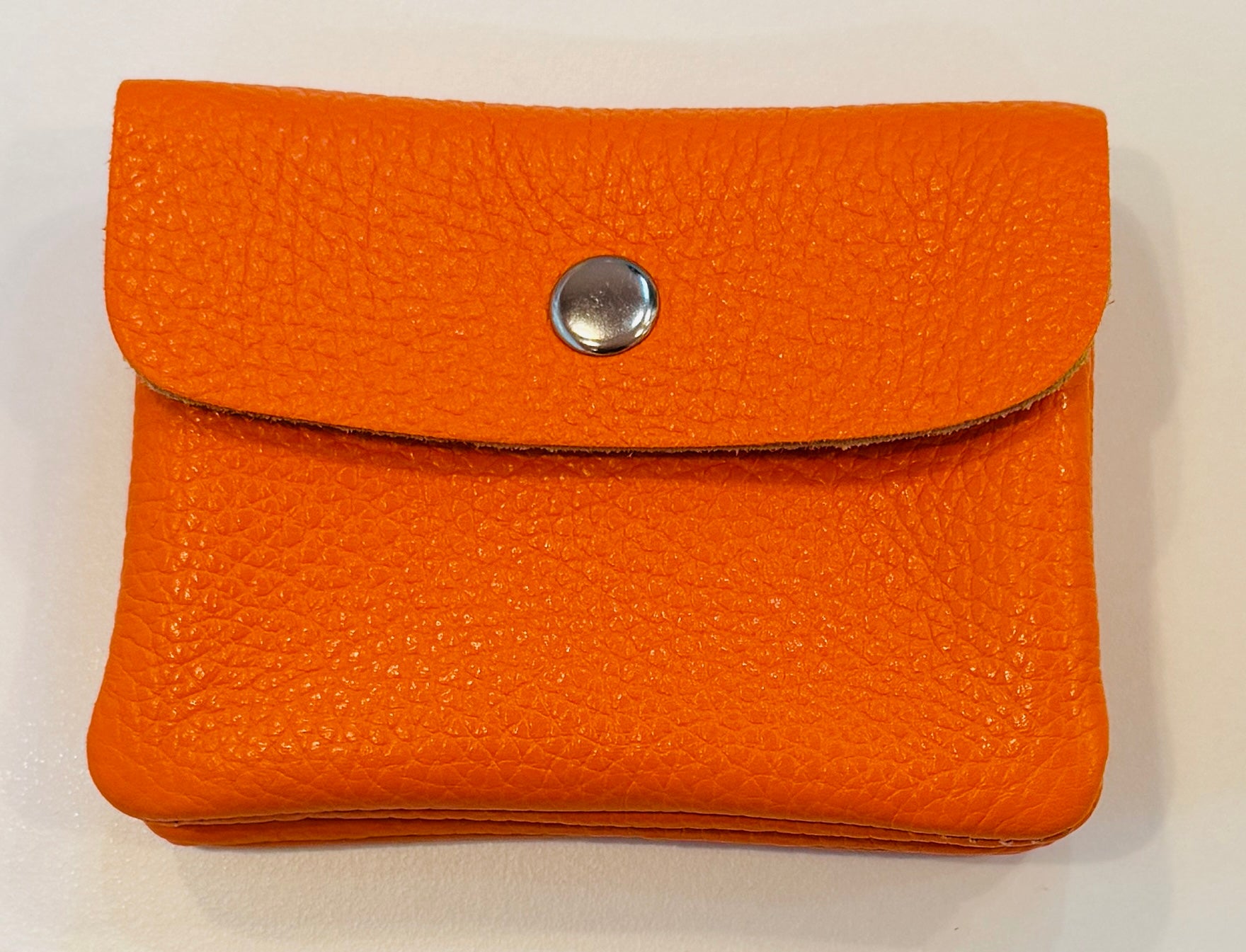 La versione mini del nostro iconico portafoglio busta. Chiusura con bottone a clip e tre tasche interne, due aperte e una con zip.