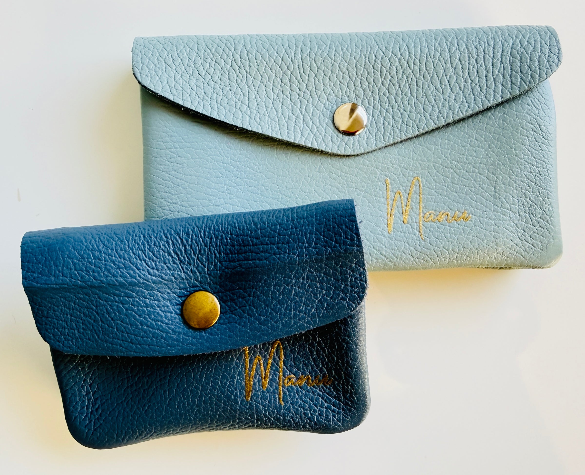 La versione mini del nostro iconico portafoglio busta. Chiusura con bottone a clip e tre tasche interne, due aperte e una con zip.