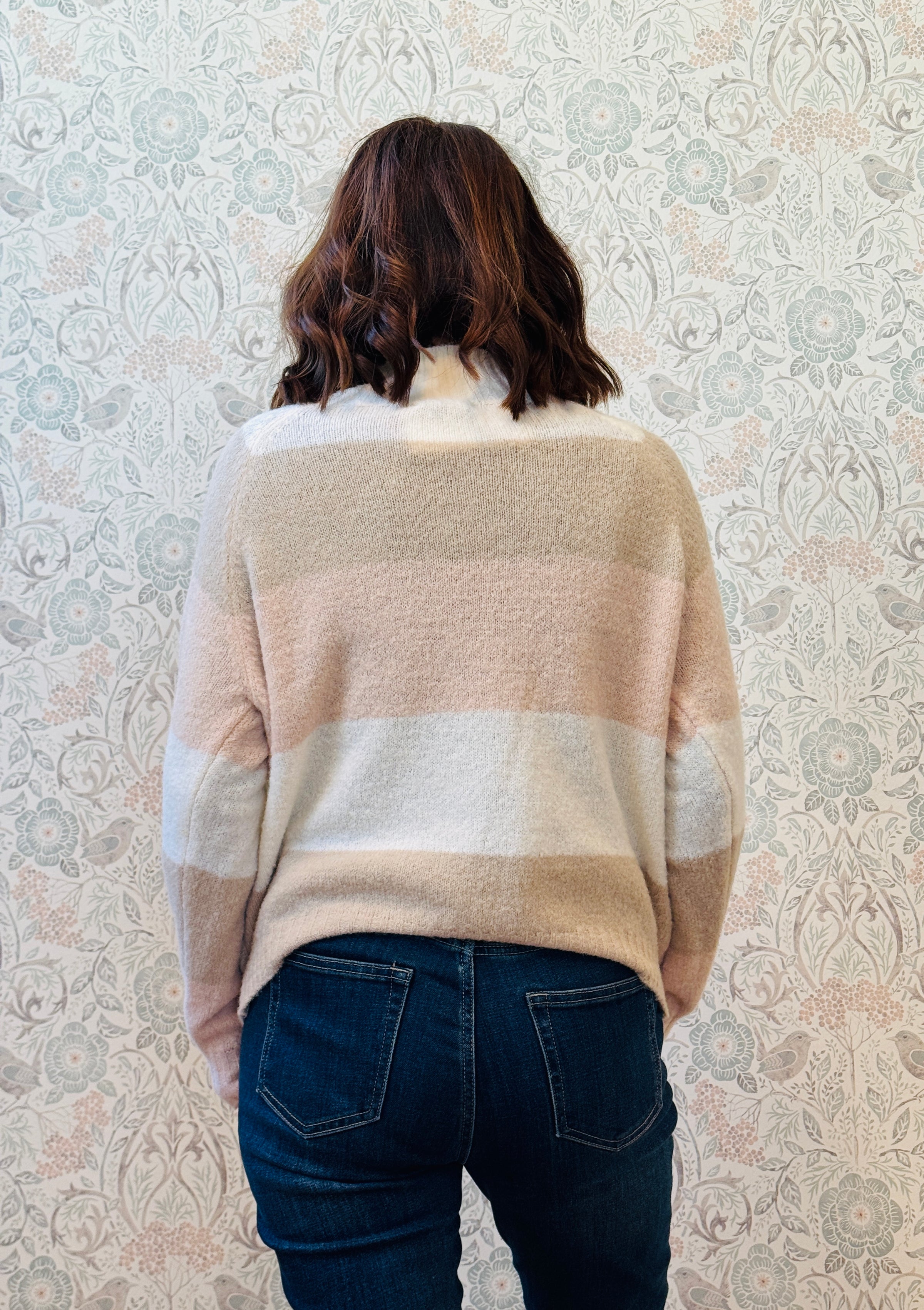 Maglione con collo all'americana e motivo a righe grandi. Vestibilità morbida.