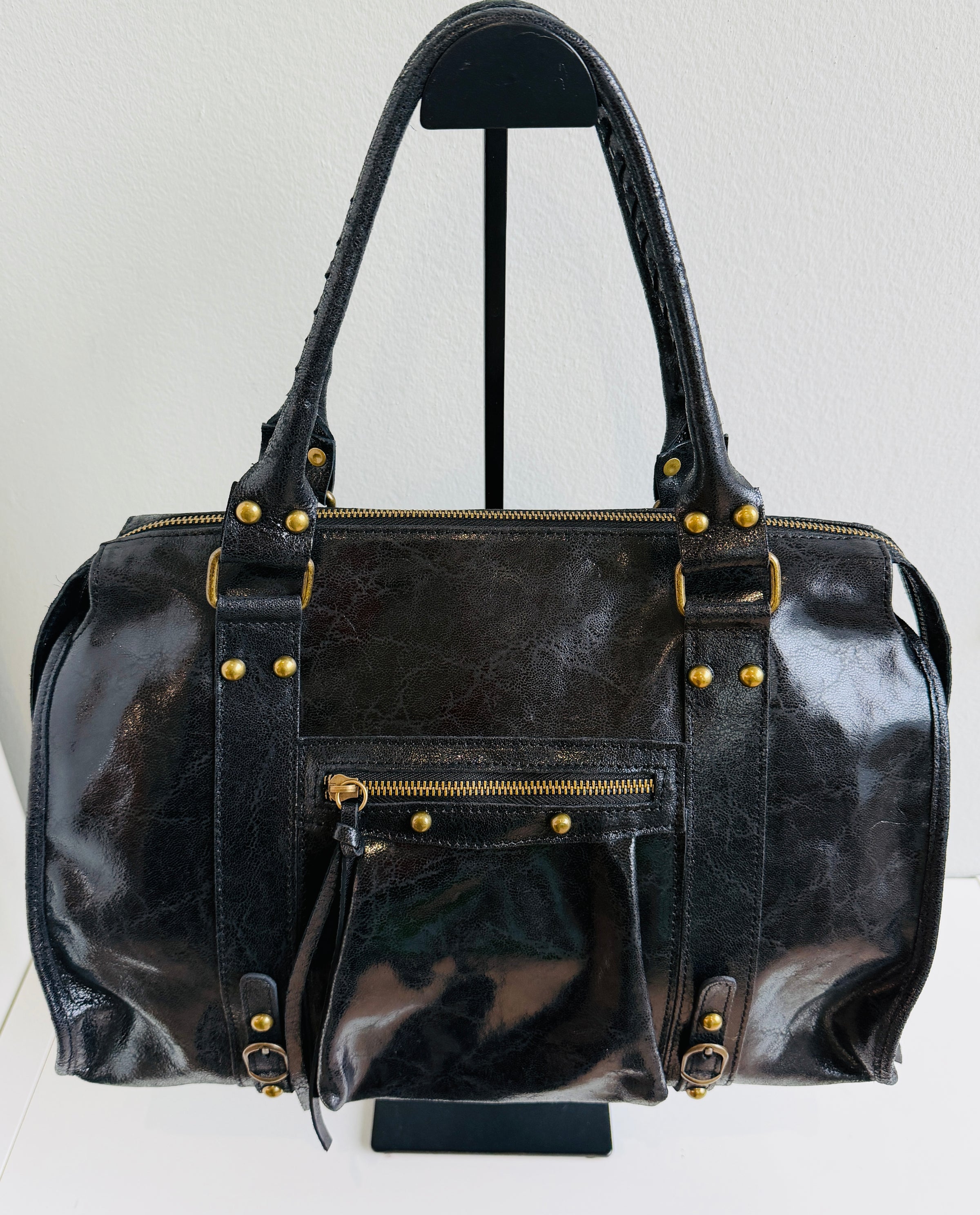 Borsa con manico a mano e tracolla lunga regolabile e removibile. Chiusura con zip, tasca interna con zip e tasca esterna sul davanti con zip.