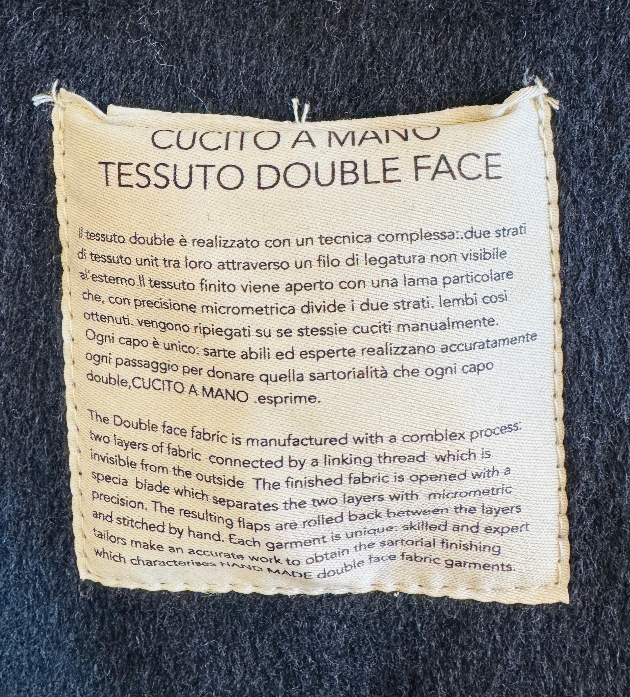 Doppio tessuto cucito a mano.