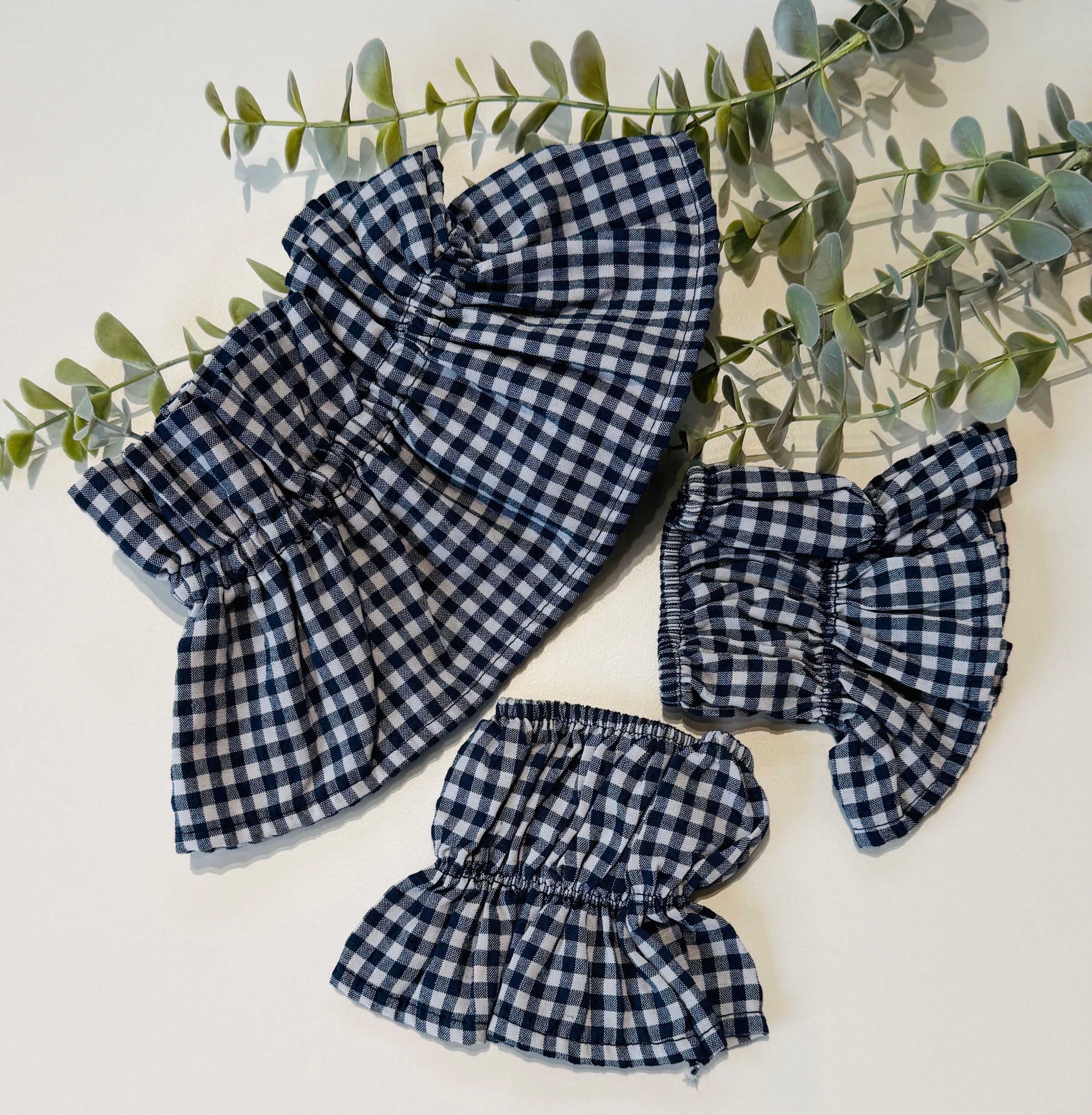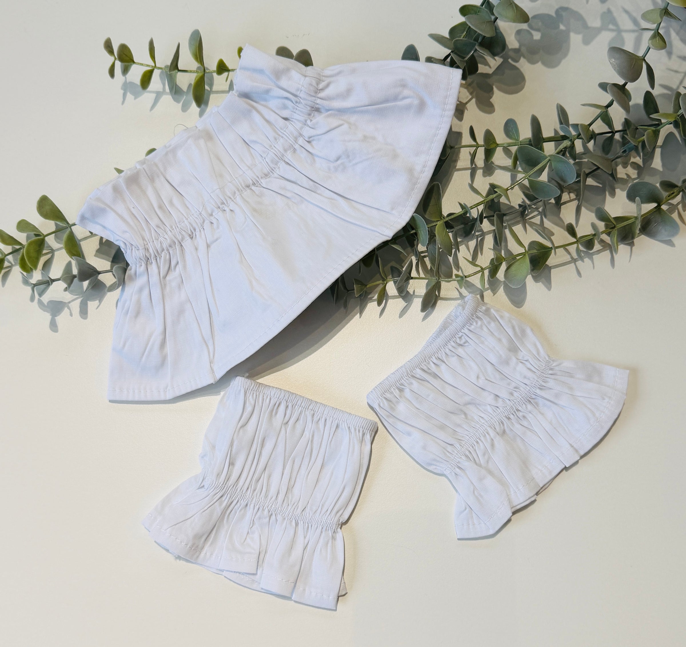 Kit composto da collo e polsini con dettaglio volant e elastico.