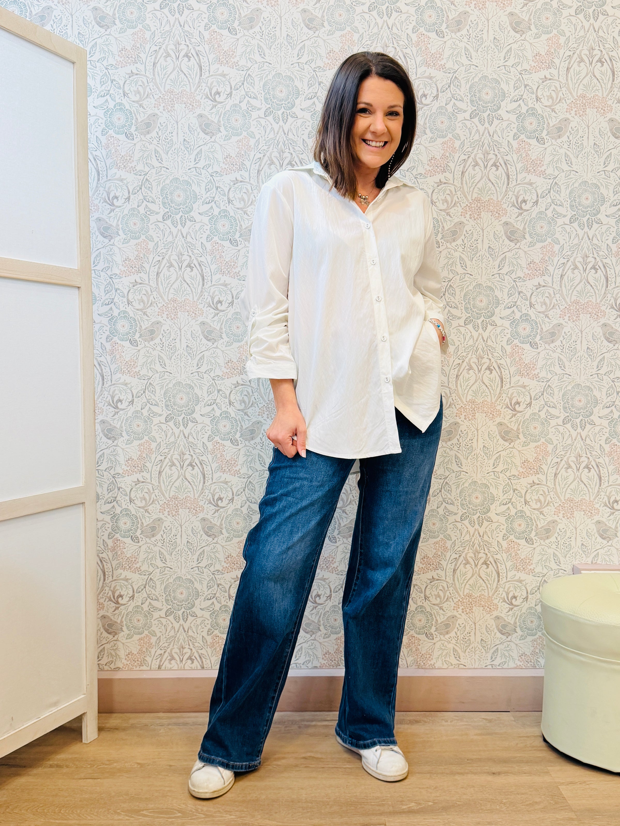 Camicia dal taglio classico con vestibilita' ampia e morbida. Risvolto sulle maniche removibile.