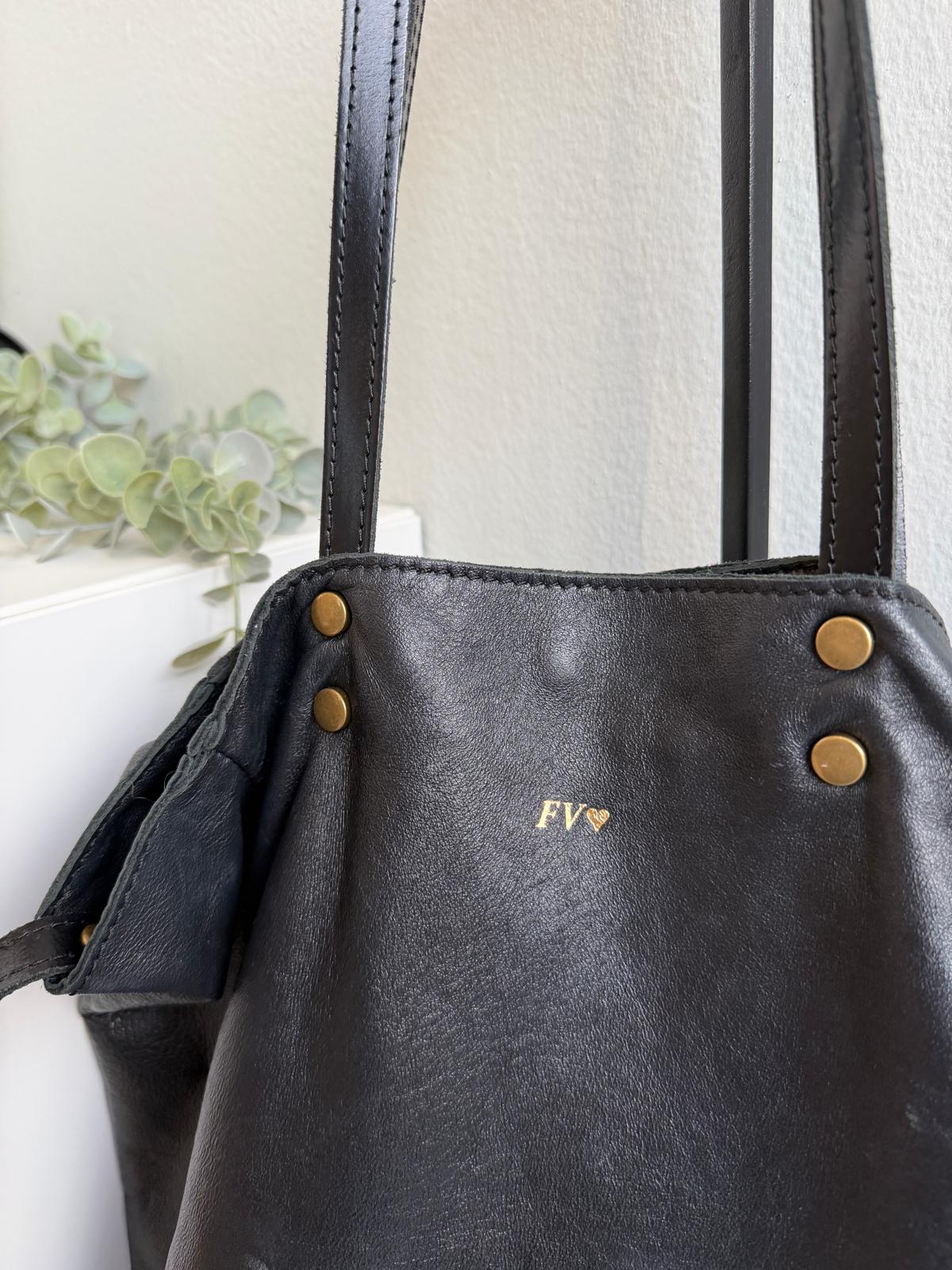 Borsa made in Italy con manici lunghi e tracolla. Chiusura con bottone a pressione e tasca interna con zip.