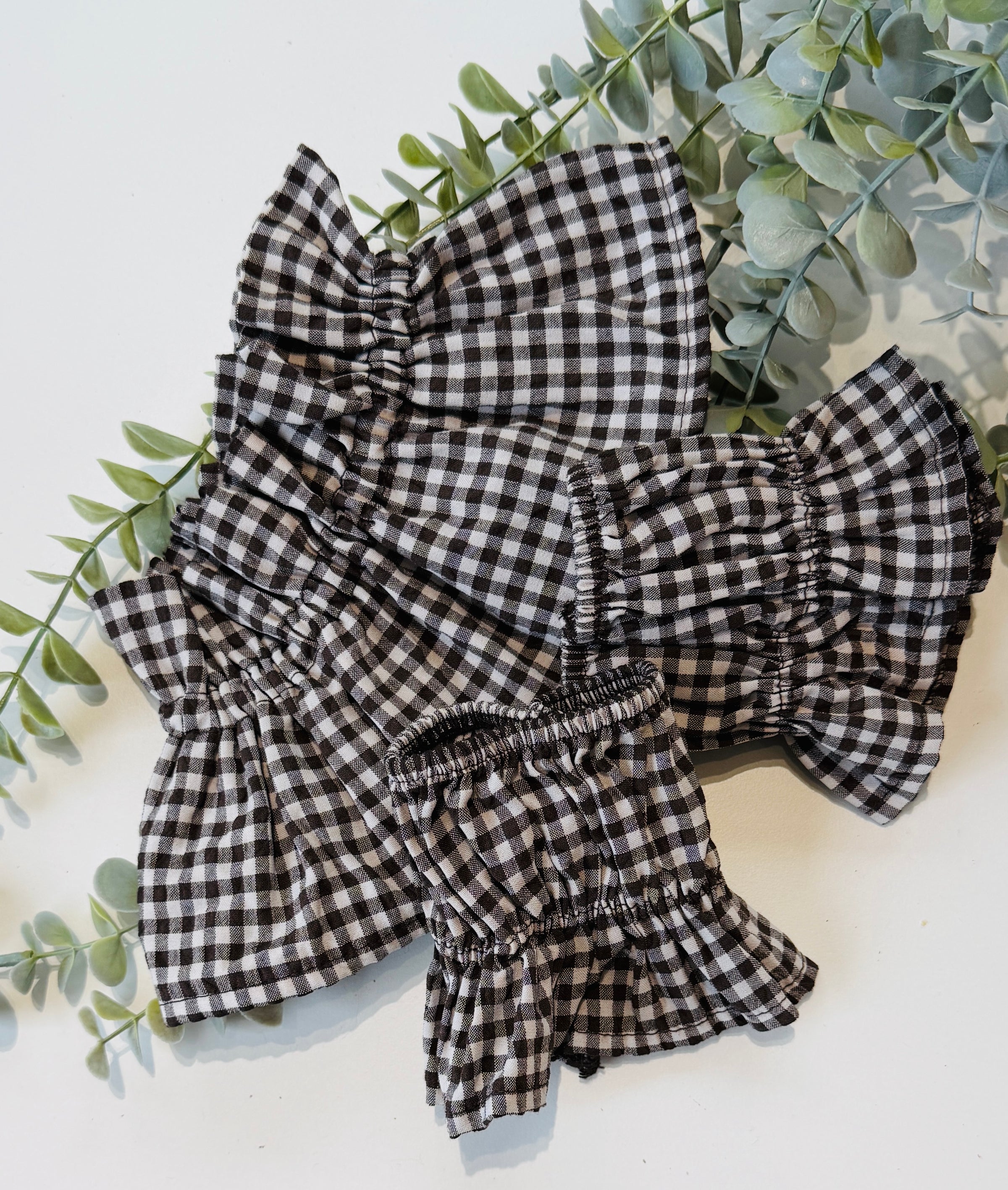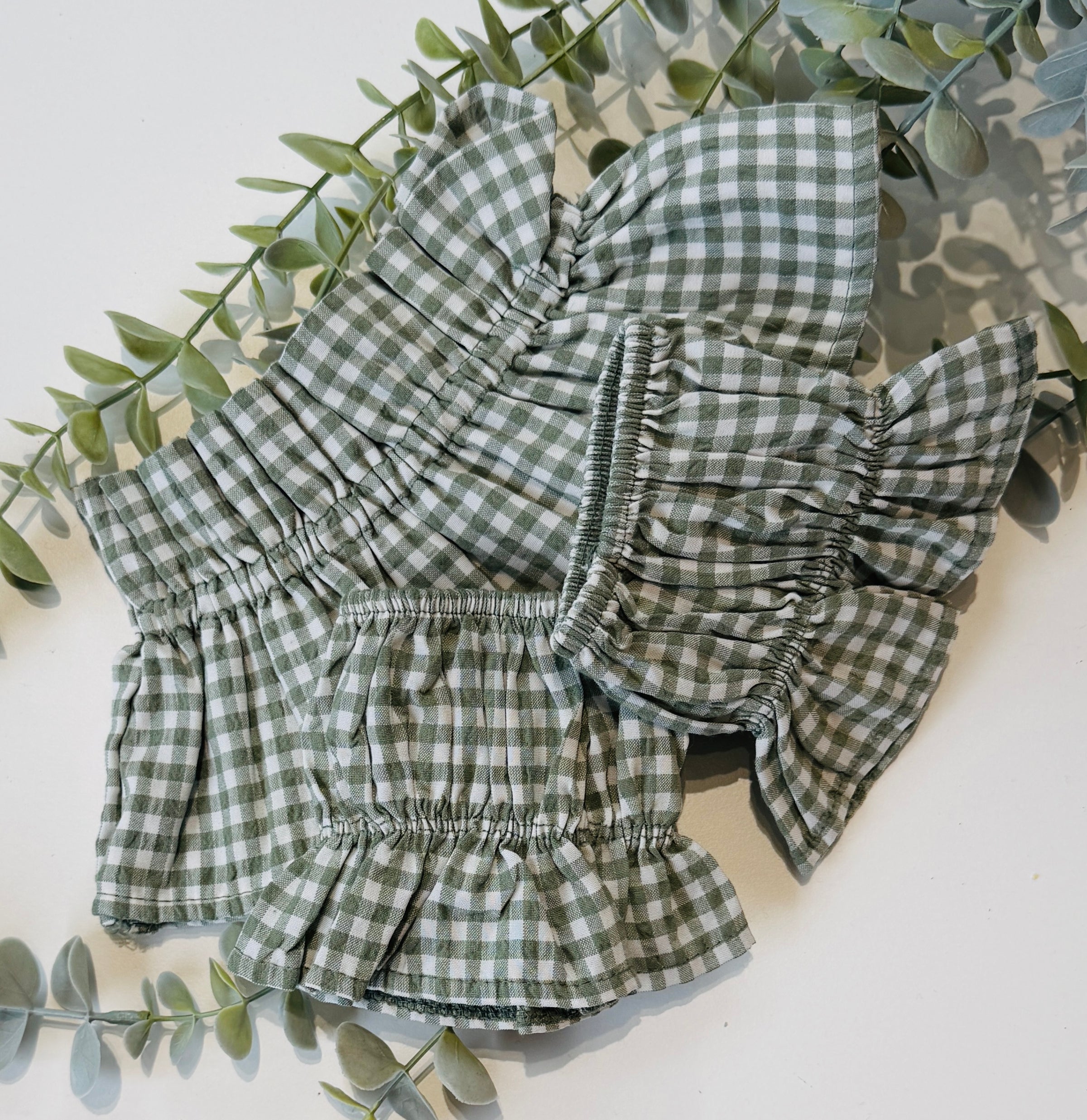 Kit composto da collo e polsini con dettaglio volant e elastico.
