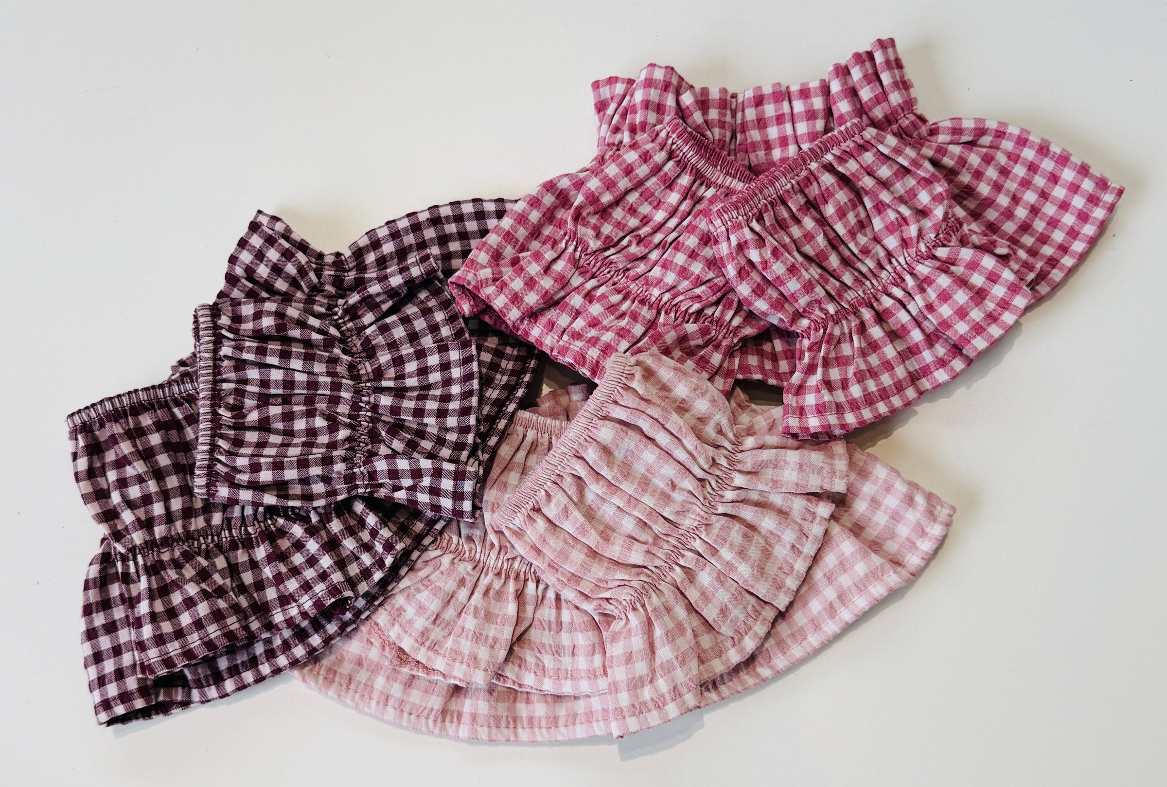 Disponibile in fantasia vichy nei colori blu, jeans, giallo, bordeaux, rosa, militare, marrone, ciclamino e verde, tinta unita in bianco e a righe bordeaux.