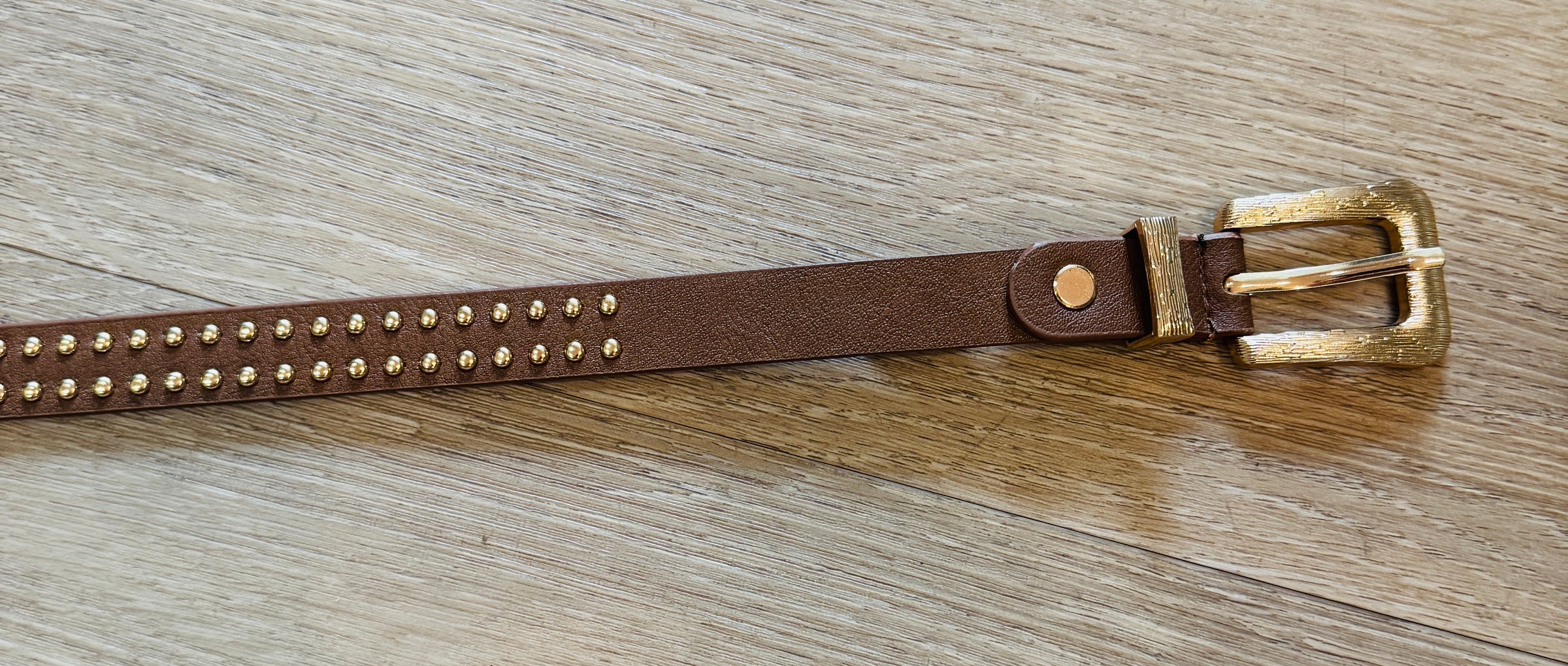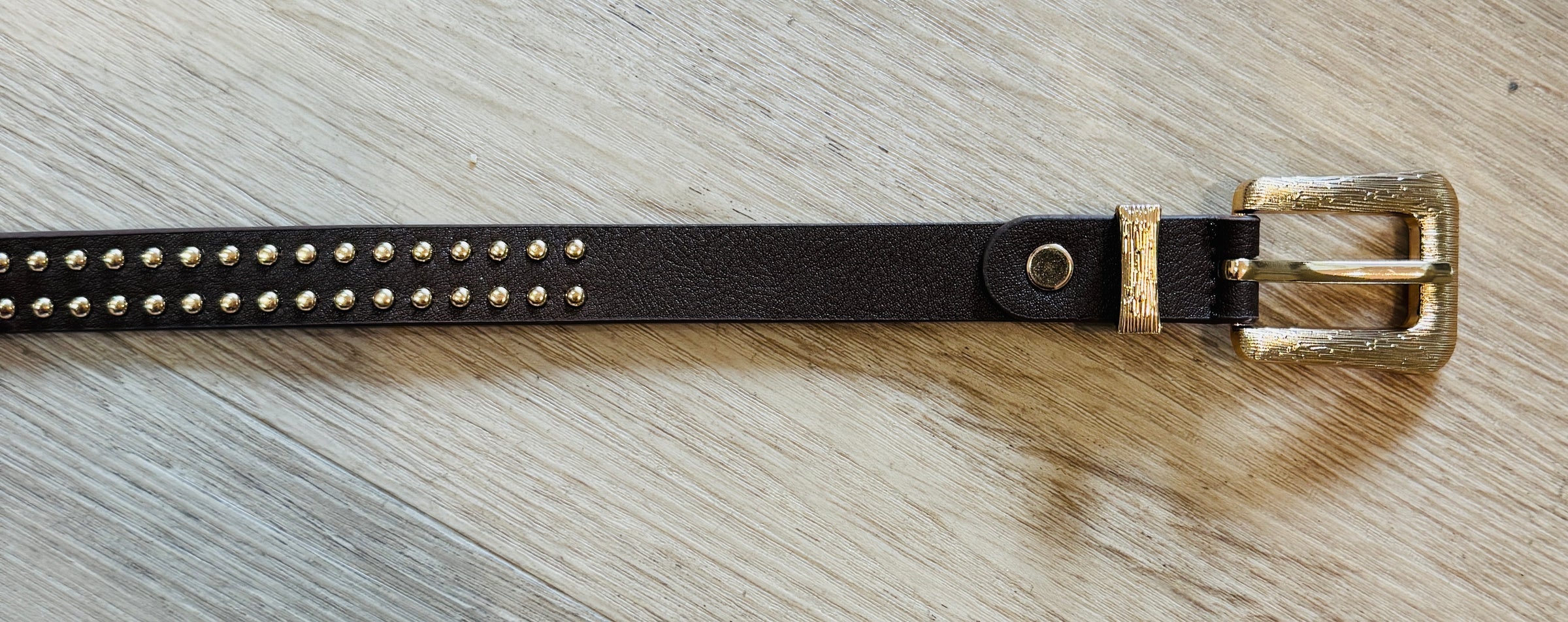 Cintura con borchiette dorate applicate.
