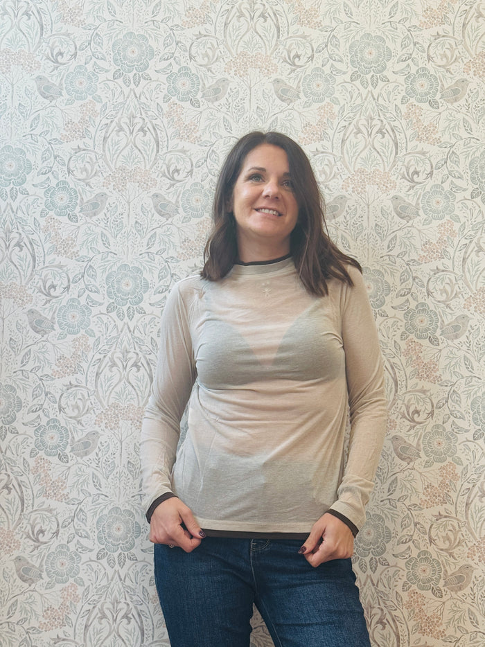T-shirt manica lunga Bodycon Barchetta Panna