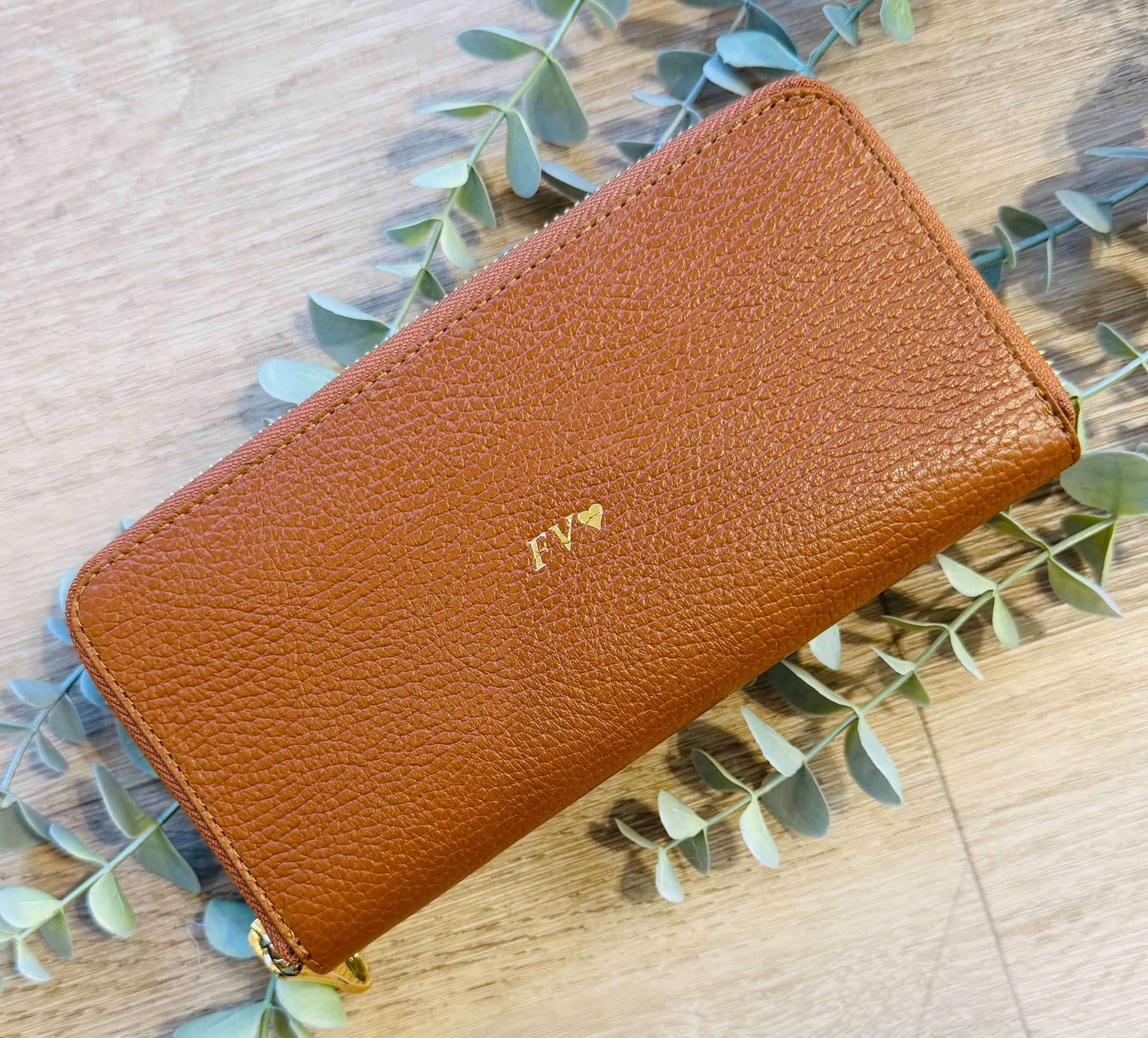 Portafoglio con chiusura zip e scomparti interni (uno con zip e due con portabanconote e carte).
