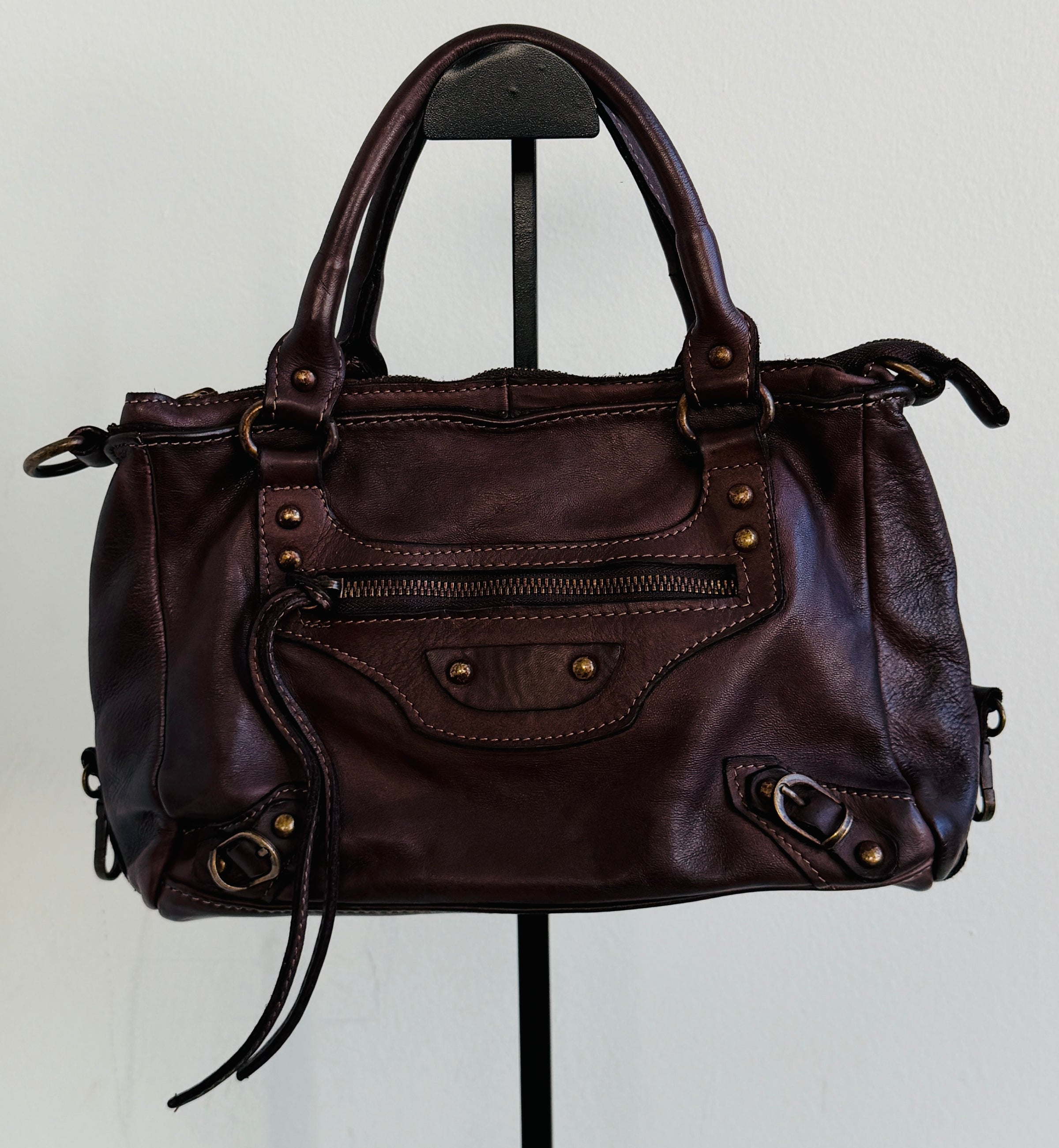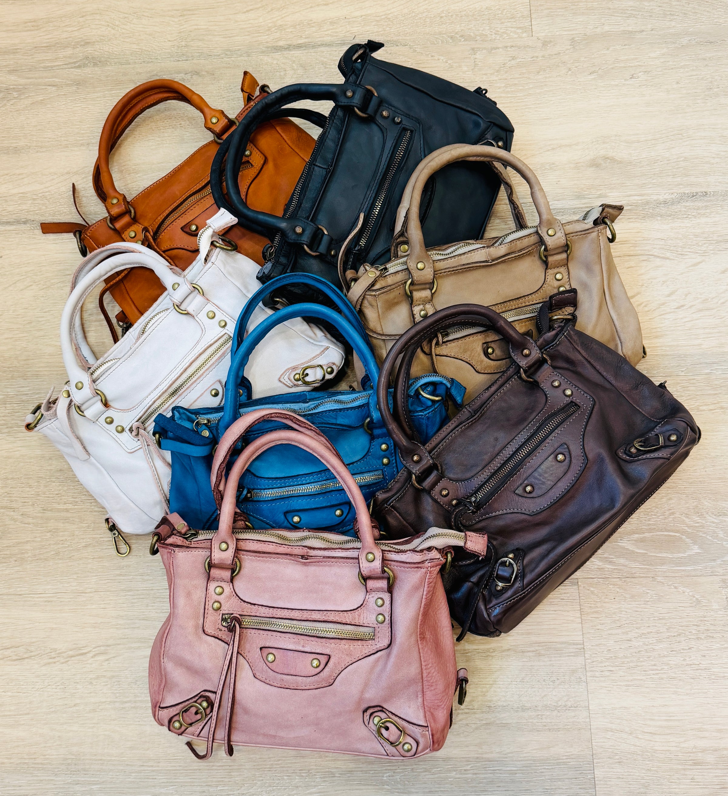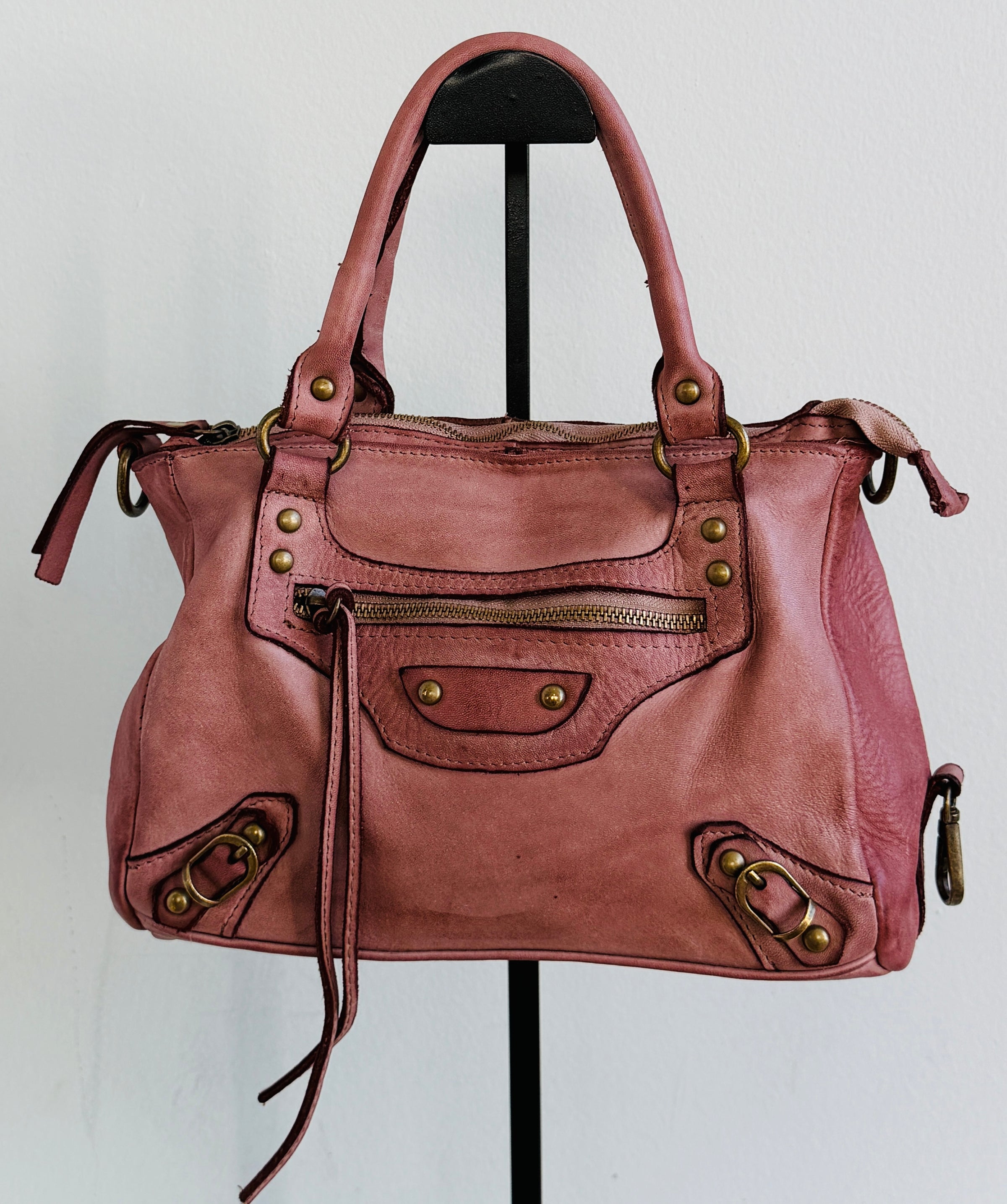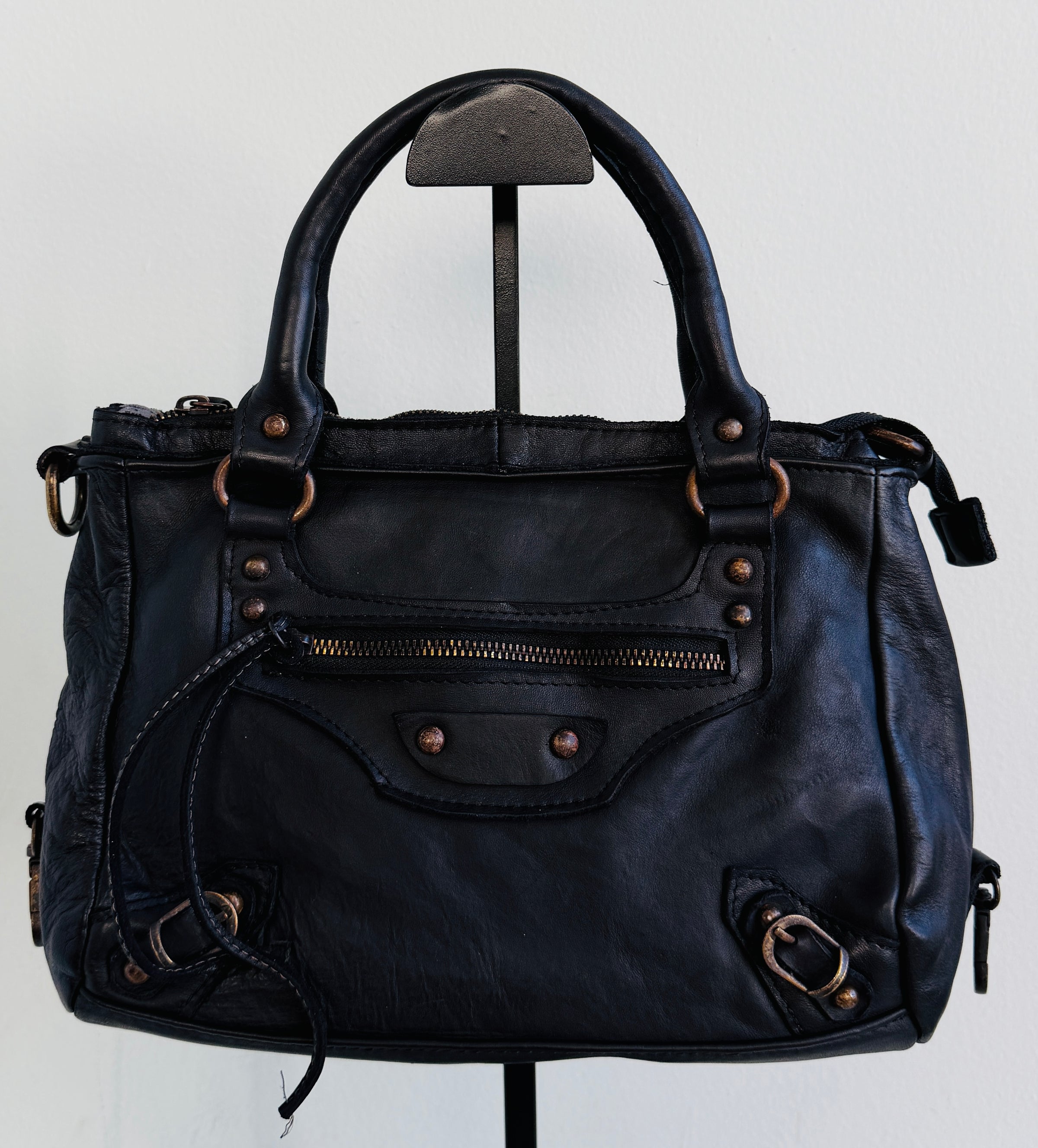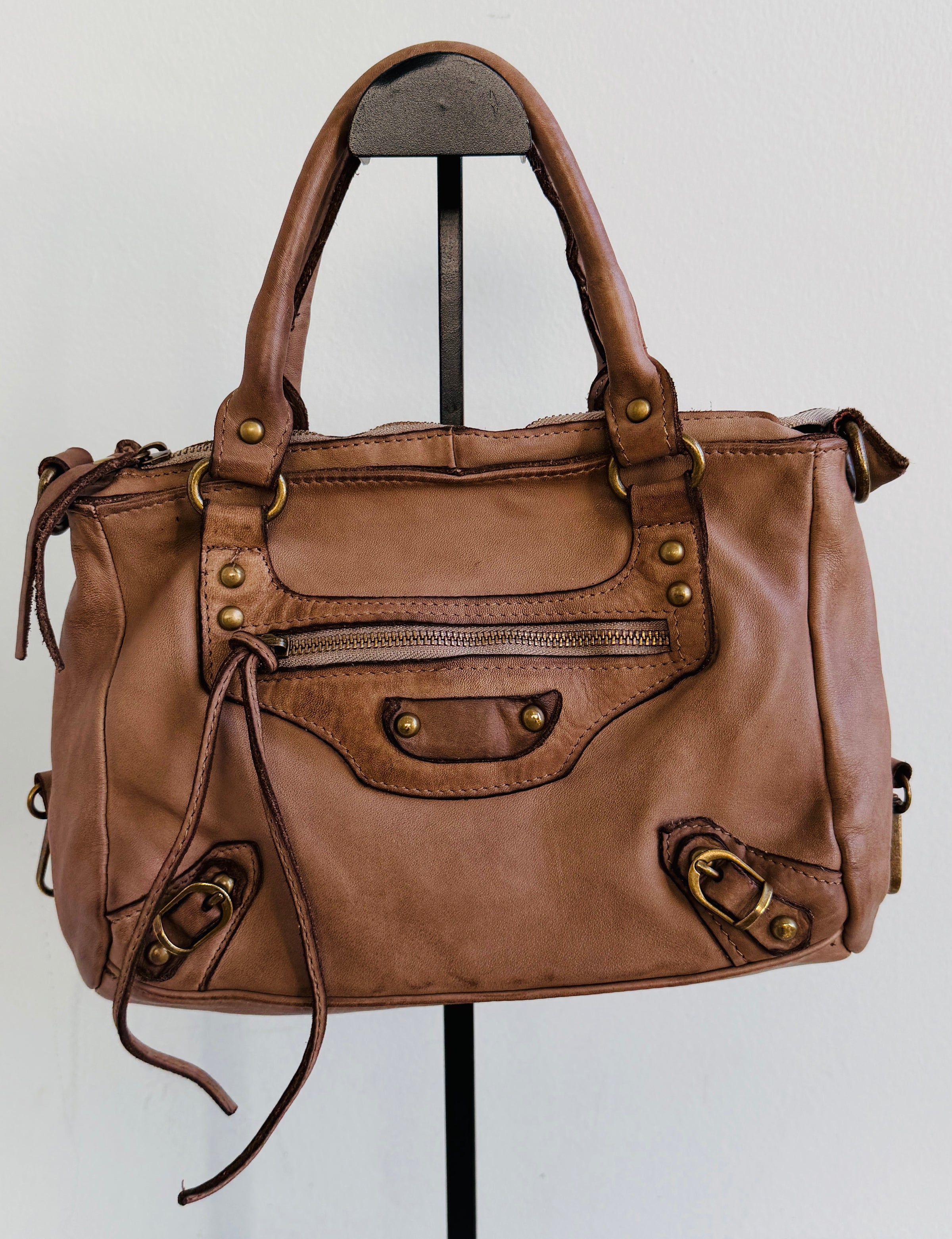 Borsa con manico a mano, tracolla regolabile e removibile e chiusura zip. Tasca interna con zip e tasca eterna con zip.