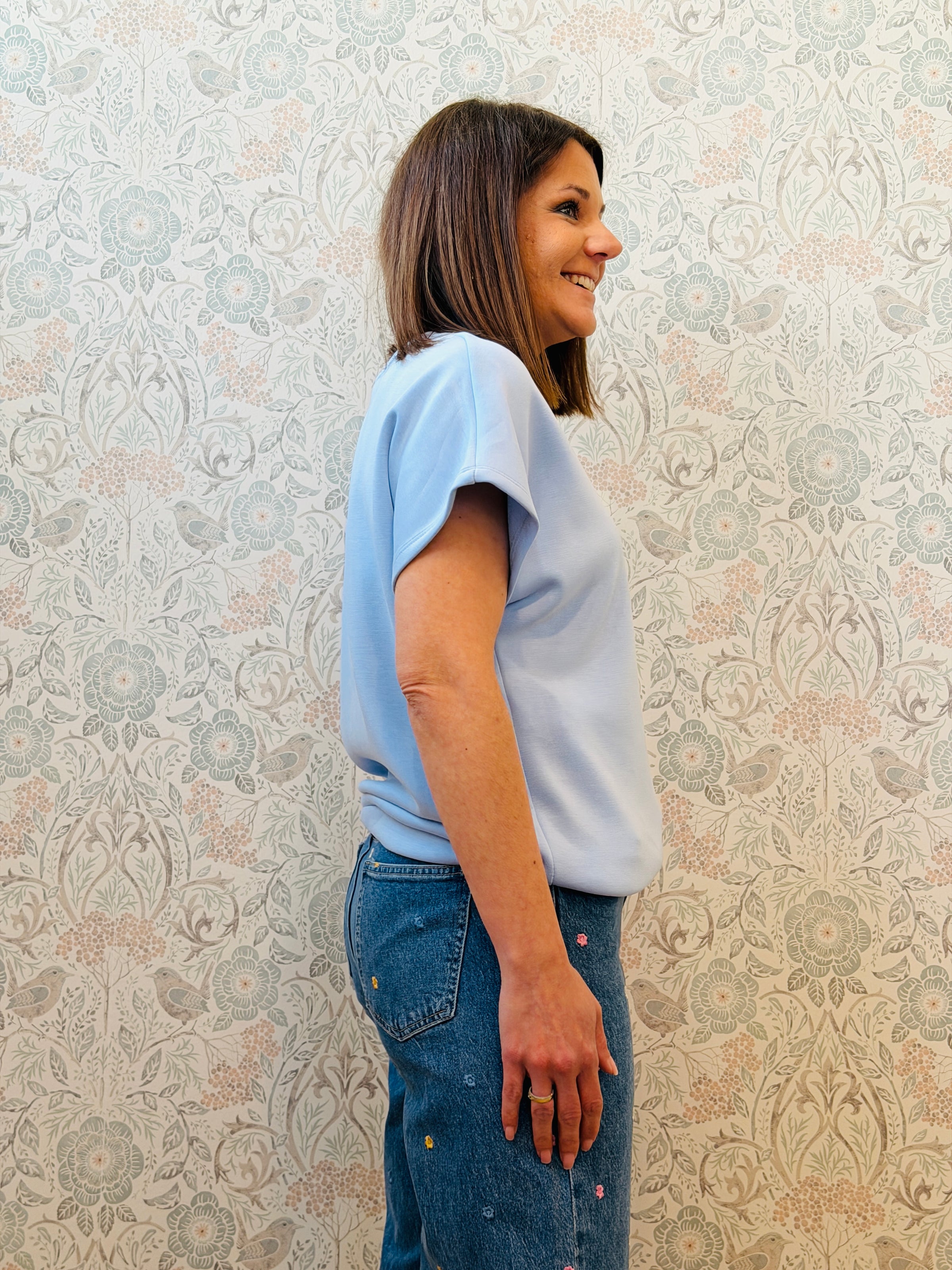 Felpa a manica corta con elastico sul bordo finale. Vestibilita' morbida a ampia.