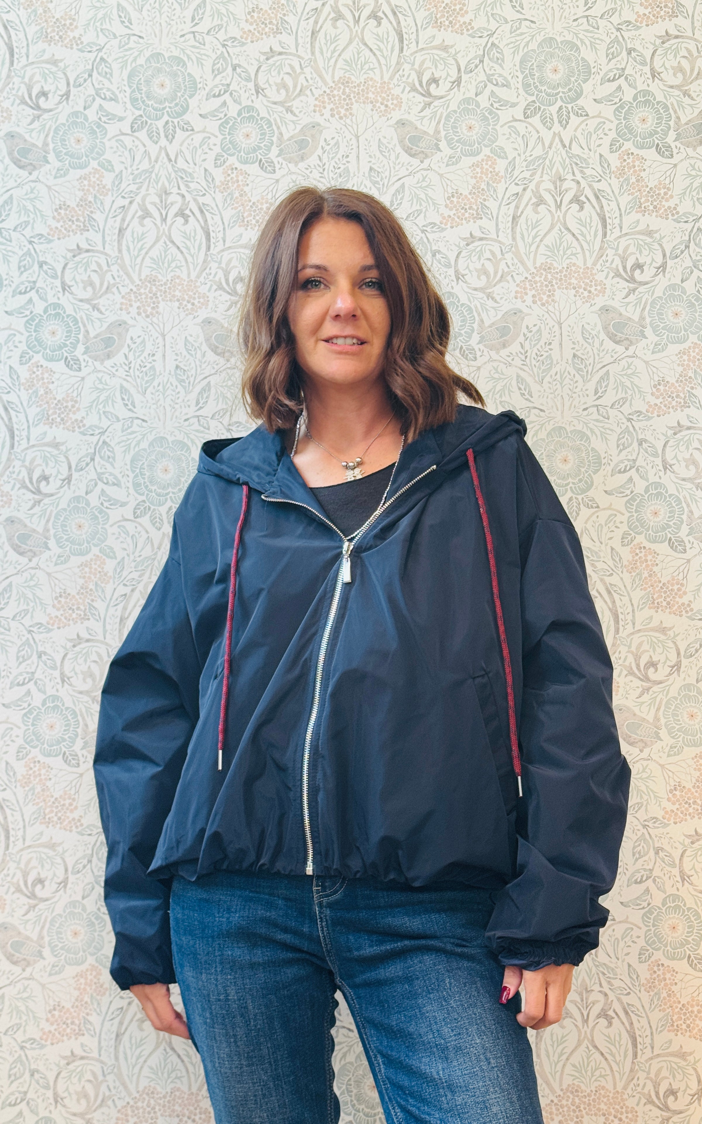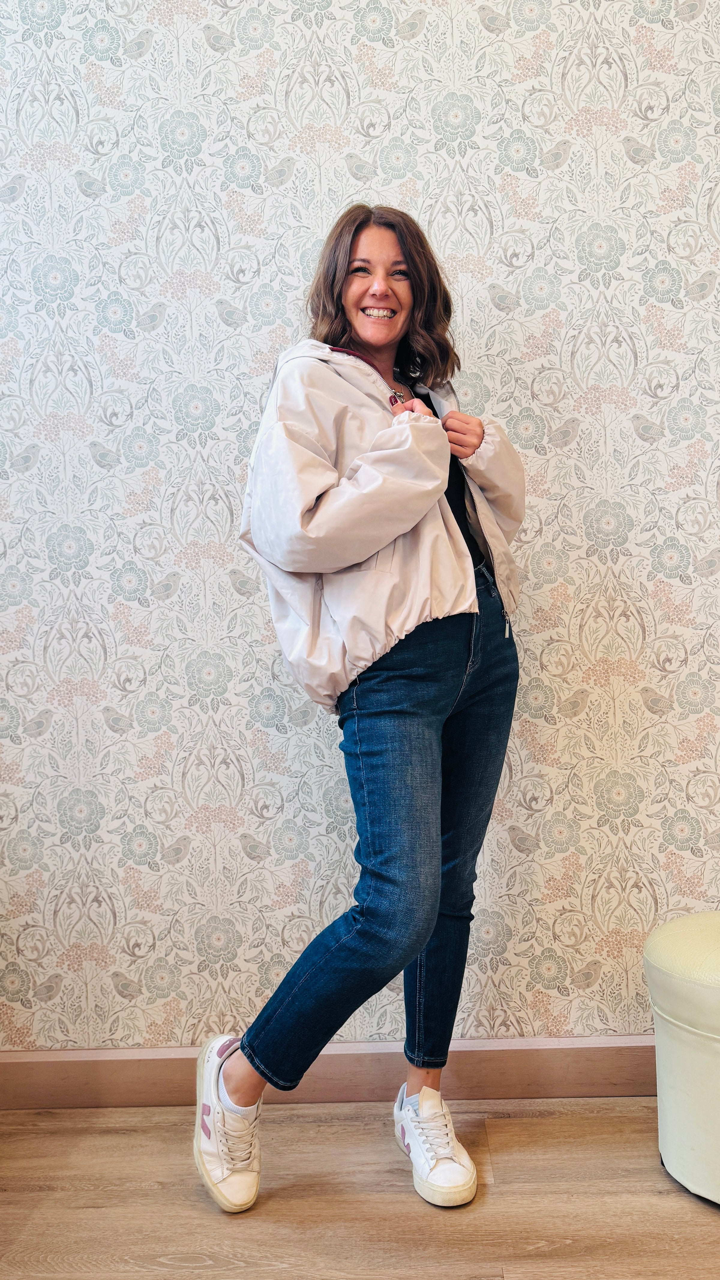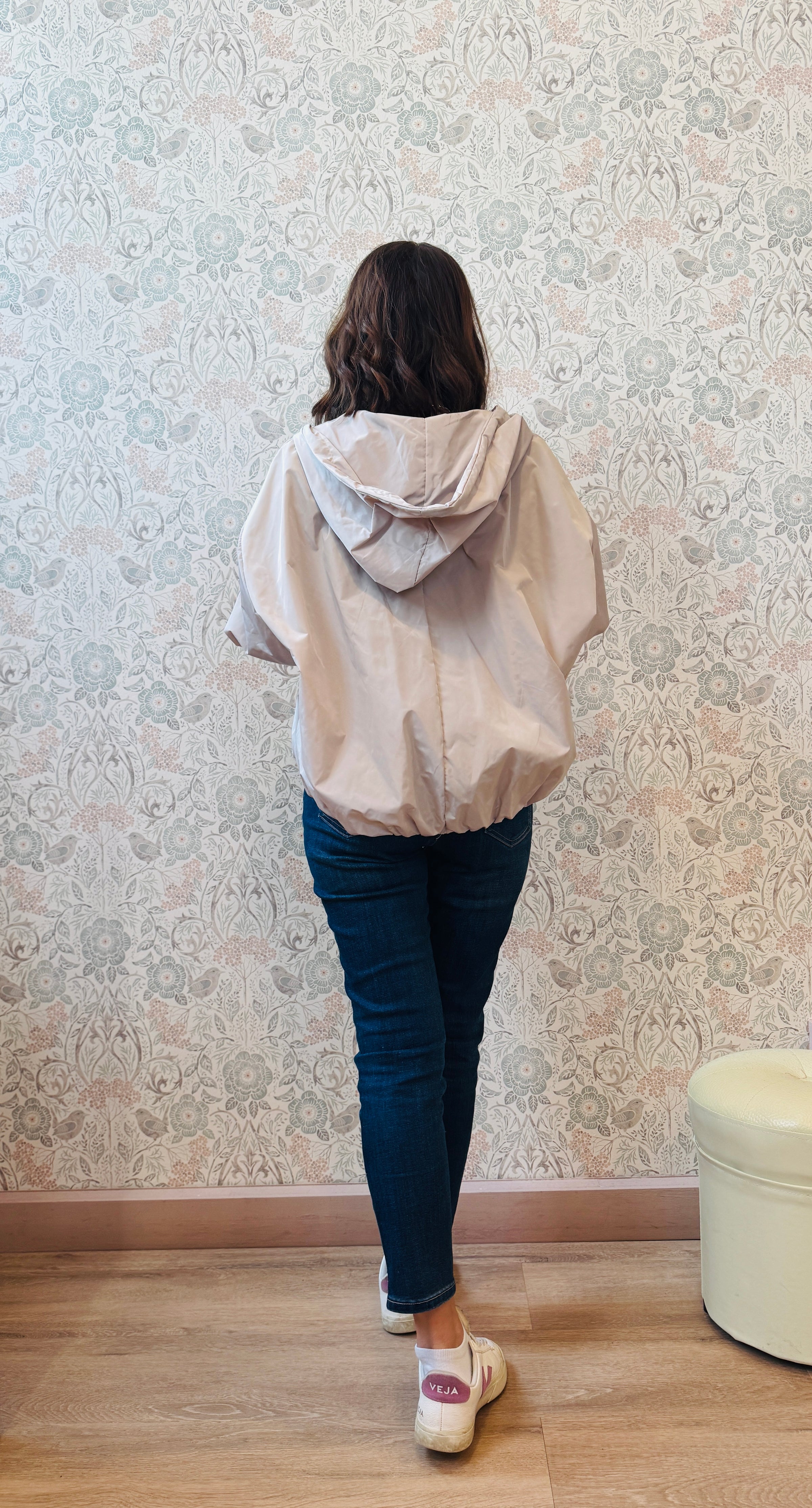 Spolverino 100 gr con cappuccio, chiusura zip e tasche laterali aperte. Finale con elastico bombato e vestibilità morbida e ampia.