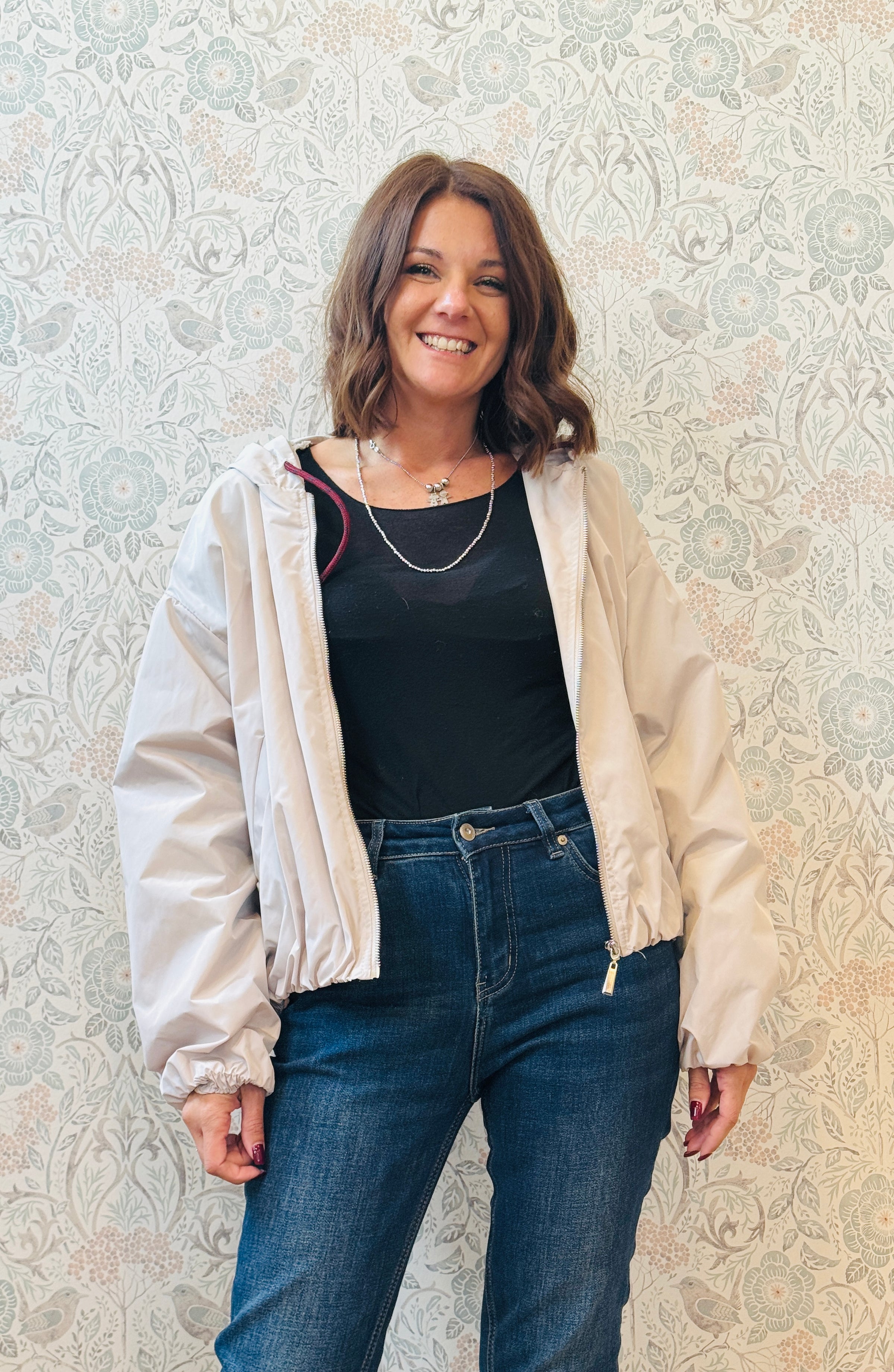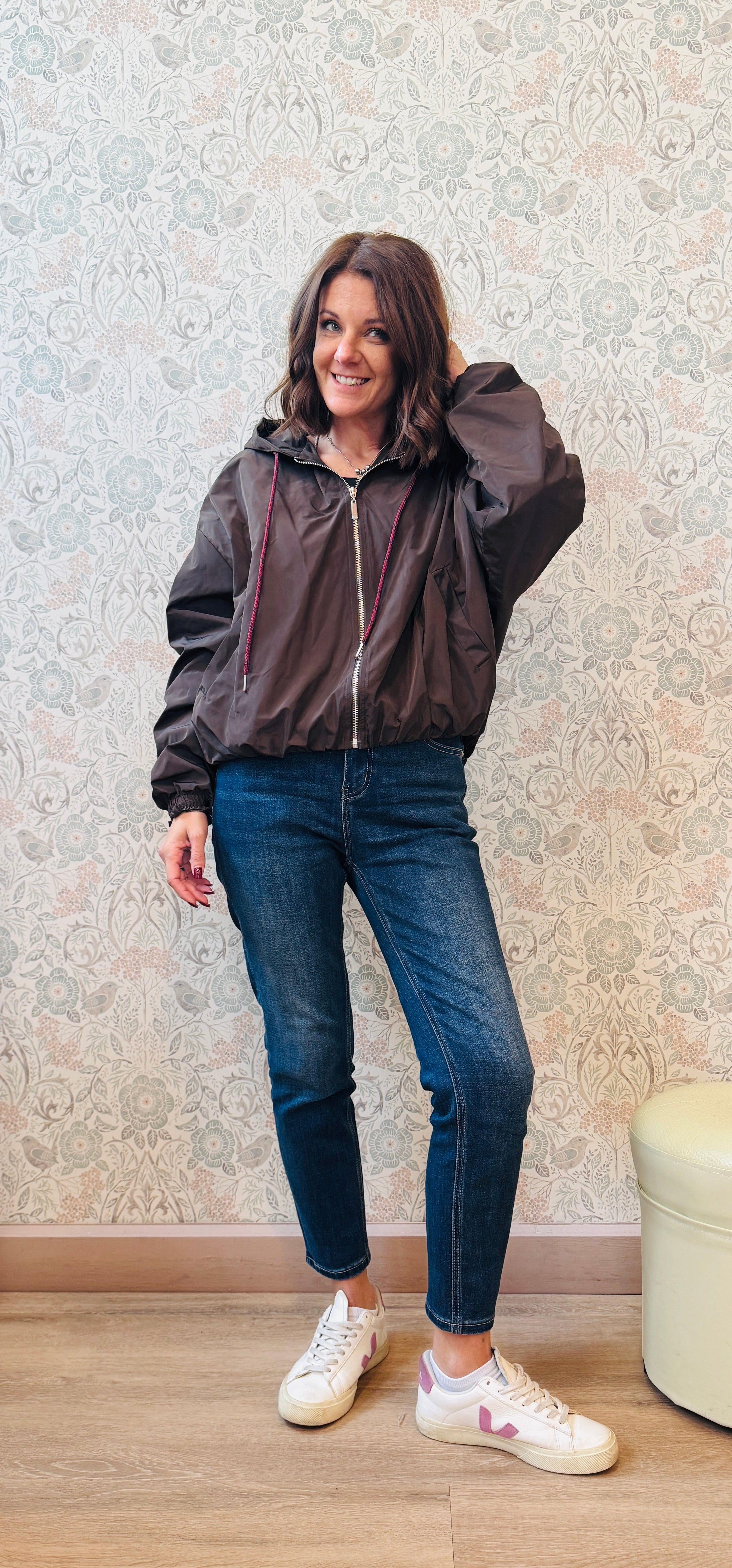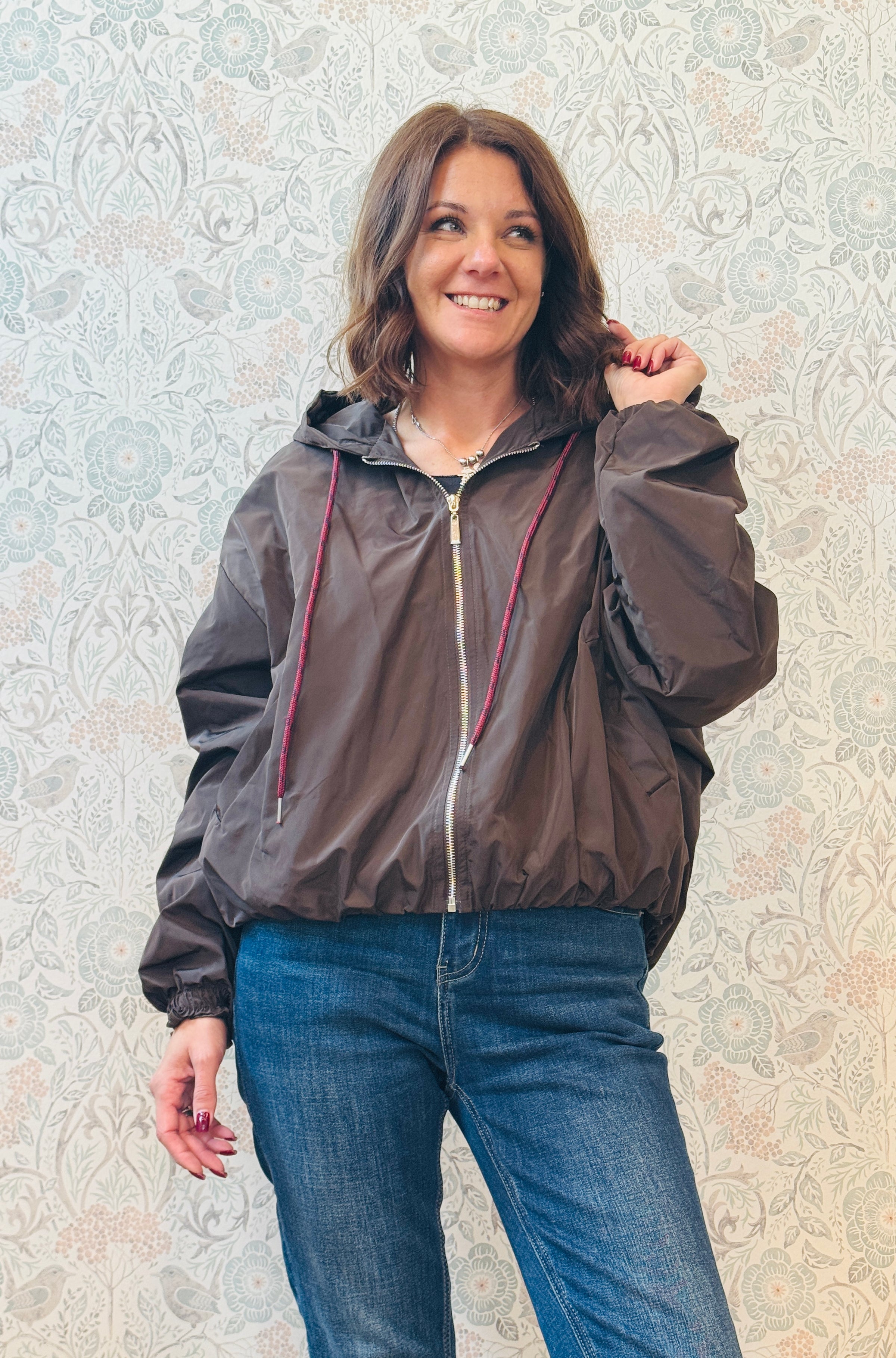 Spolverino 100 gr con cappuccio, chiusura zip e tasche laterali aperte. Finale con elastico bombato e vestibilità morbida e ampia.