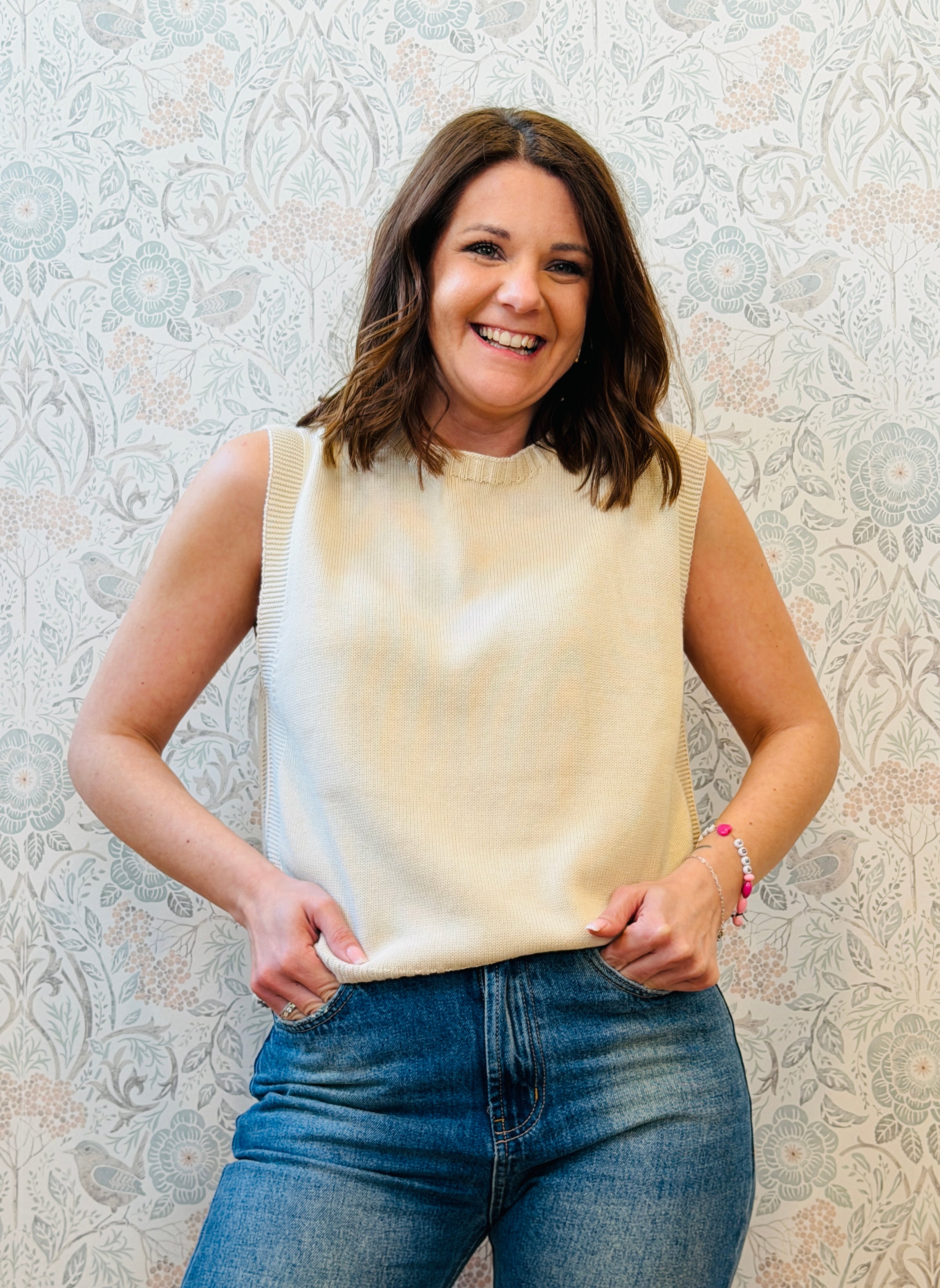 Gilet con scollo tondo e dettagli lungo tutti i lati.