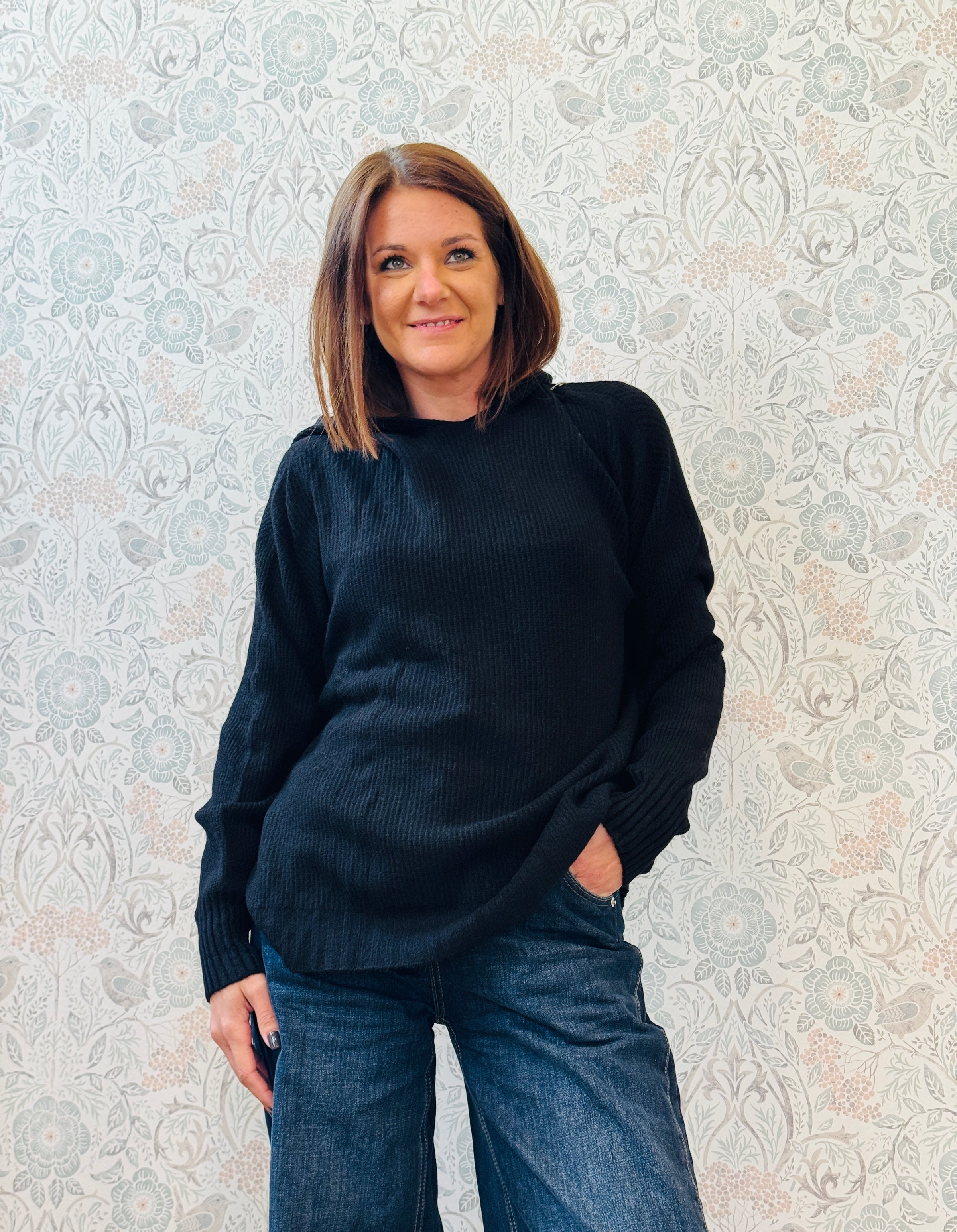 Maglione in 50%viscosa, 27%poliestere e 23%poliammide.